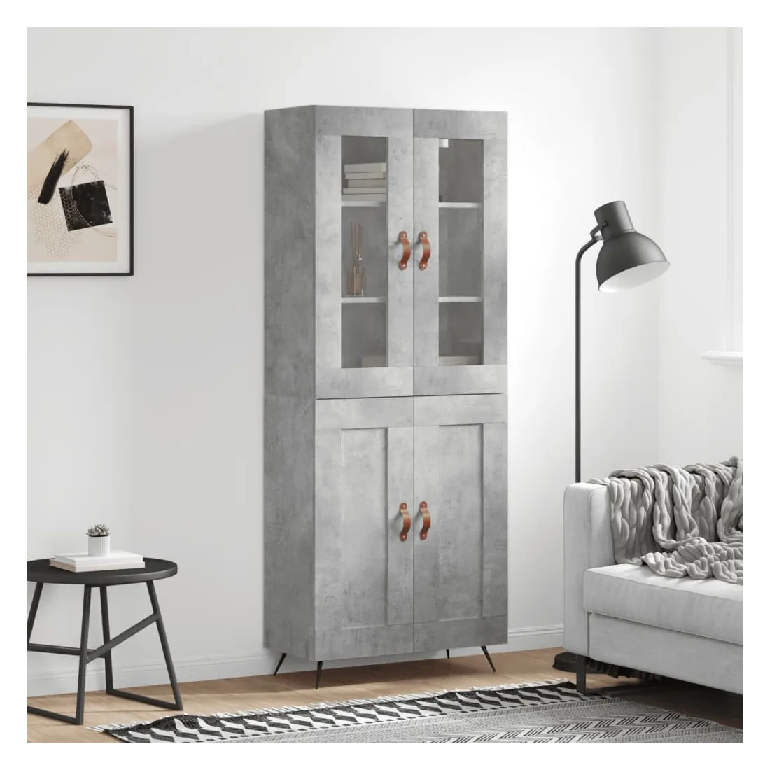 Buffet haut Gris béton 69,5x34x180 cm Bois d'ingénierie