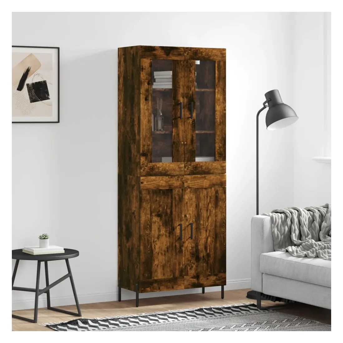Buffet haut Chêne fumé 69,5x34x180 cm Bois d'ingénierie