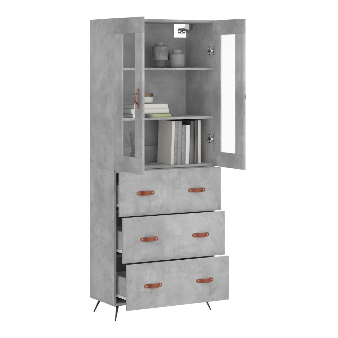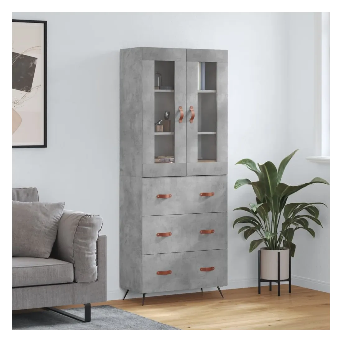 Buffet haut Gris béton 69,5x34x180 cm Bois d'ingénierie