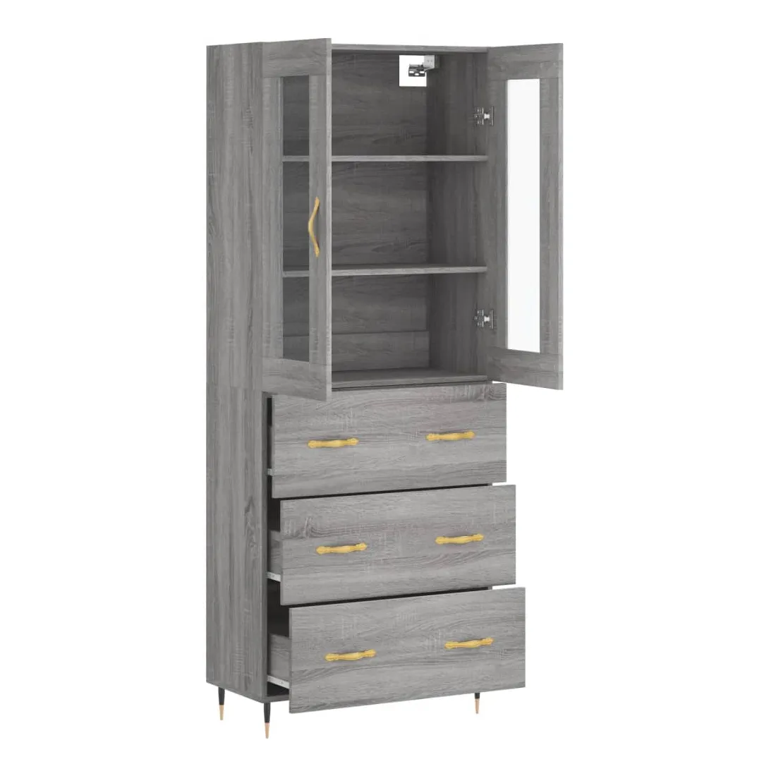Cherchez-vous un buffet haut de gamme stylé ? Ce buffet haut ajoute un charme élégant à votre intérieur existant ! Matériau durable : le bois d'ingénierie est d'une qualité exceptionnelle avec une surface lisse et présente également résistance, stabilité et résistance à l'humidité. Grand espace de rangement : l'armoire offre un grand espace de rangement pour garder vos différents articles essentiels quotidiens bien organisés et facilement accessibles. Pieds en métal : les pieds en métal ajoutent un style calme à votre intérieur tout en assurant la stabilité. Attention : Pour éviter qu'il ne soit renversé, ce produit doit être utilisé avec le dispositif de fixation au mur fourni. Bon à savoir : Les vis et les chevilles pour l'intérieur du mur ne sont pas incluses. Nous vous conseillons