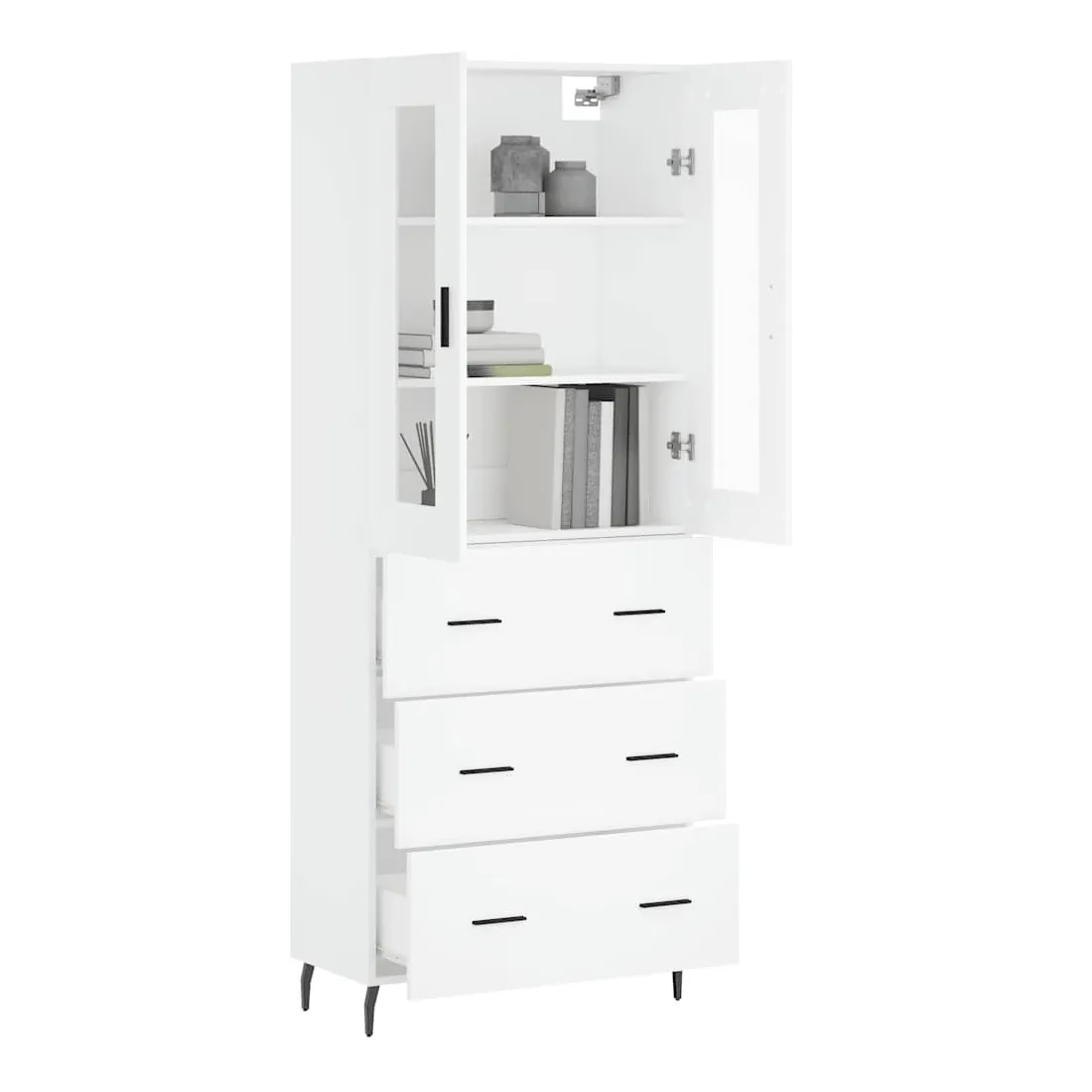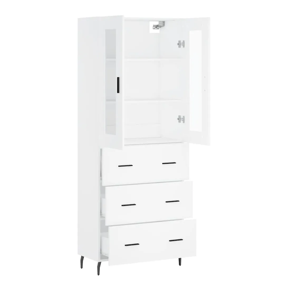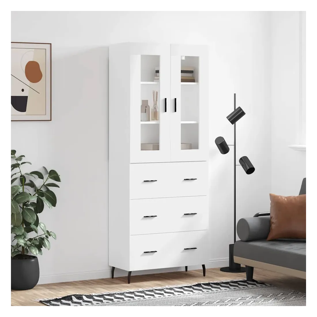 Cherchez-vous un buffet haut de gamme stylé ? Ce buffet haut ajoute un charme élégant à votre intérieur existant ! Matériau durable : le bois d'ingénierie est d'une qualité exceptionnelle avec une surface lisse et présente également résistance, stabilité et résistance à l'humidité.Grand espace de rangement : l'armoire offre un grand espace de rangement pour garder vos différents articles essentiels quotidiens bien organisés et facilement accessibles.Pieds en métal : les pieds en métal ajoutent un style calme à votre intérieur tout en assurant la stabilité. Attention :Pour éviter qu'il ne soit renversé, ce produit doit être utilisé avec le dispositif de fixation au mur fourni. Bon à savoir :Les vis et les chevilles pour l'intérieur du mur ne sont pas incluses. Nous vous conseillons de trouver et d'utiliser des vis et des chevilles adaptées spécifiquement à vos murs. Si vous n'êtes pas sûr, vous pouvez consulter un professionnel. Veuillez lire et suivre chaque étape des instructions.