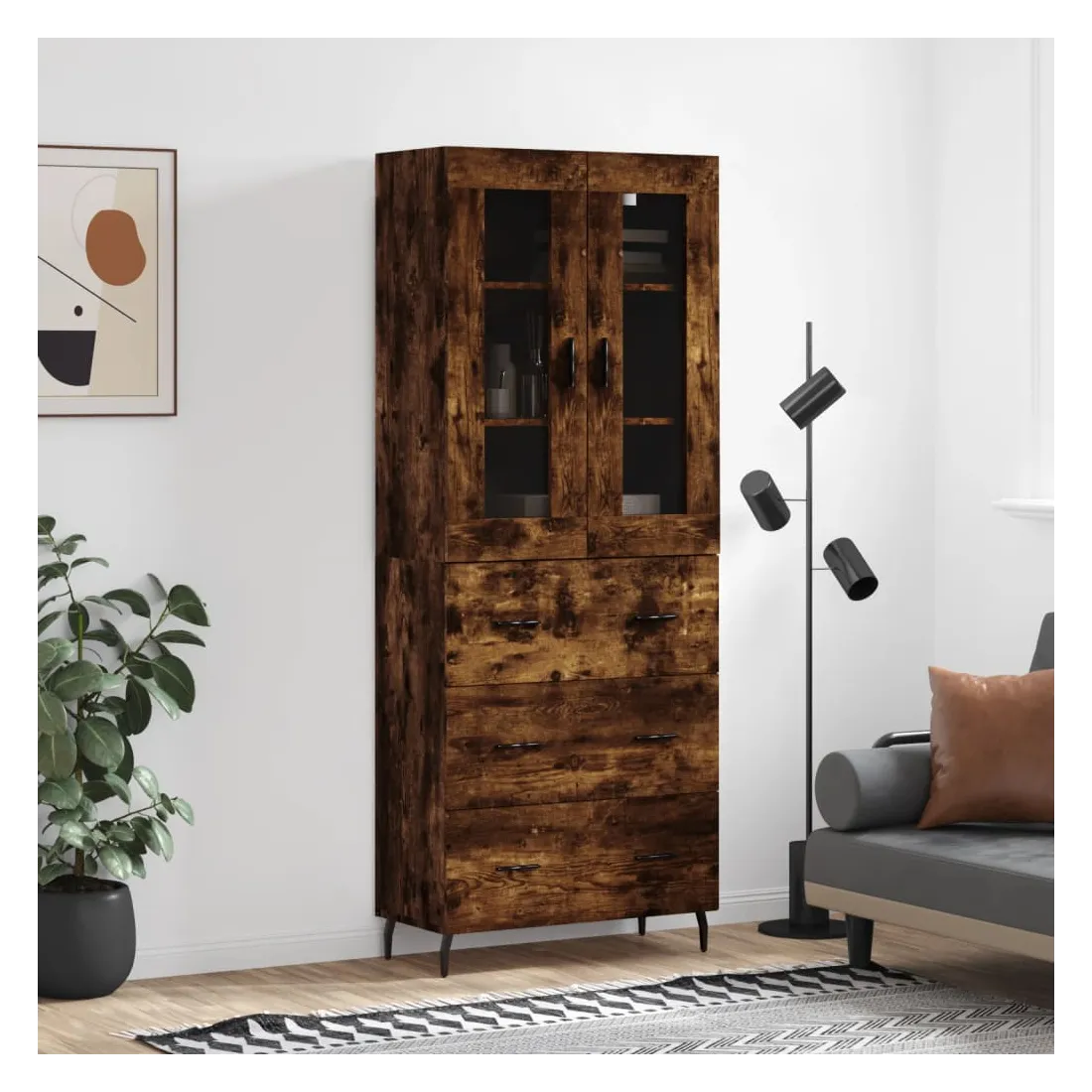 Buffet haut Chêne fumé 69,5x34x180 cm Bois d'ingénierie