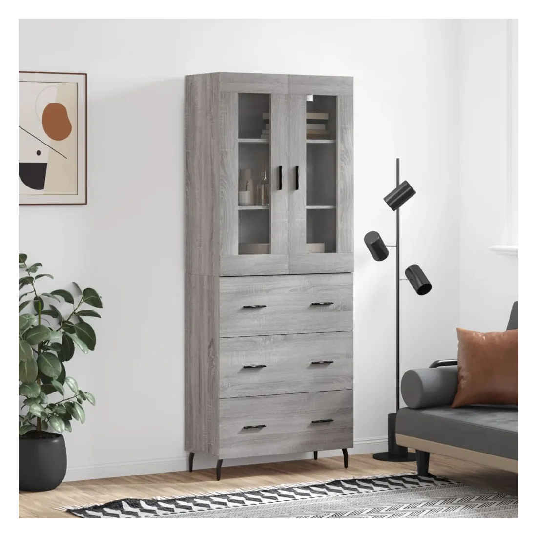 Buffet haut Sonoma gris 69,5x34x180 cm Bois d'ingénierie