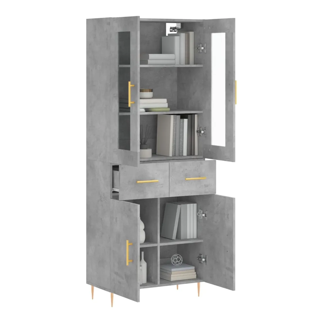 Buffet haut Gris béton 69,5x34x180 cm Bois d'ingénierie
