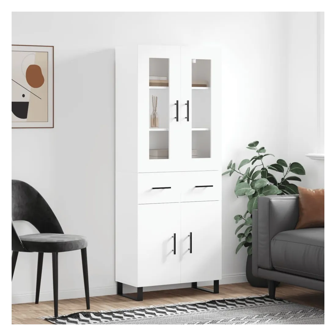 Cherchez-vous un buffet haut de gamme stylé ? Ce buffet haut ajoute un charme élégant à votre intérieur existant ! Matériau durable : le bois d'ingénierie est d'une qualité exceptionnelle avec une surface lisse et présente également résistance, stabilité et résistance à l'humidité.Grand espace de rangement : l'armoire offre un grand espace de rangement pour garder vos différents articles essentiels quotidiens bien organisés et facilement accessibles.Pieds en métal : les pieds en métal ajoutent un style calme à votre intérieur tout en assurant la stabilité. Attention :Pour éviter qu'il ne soit renversé, ce produit doit être utilisé avec le dispositif de fixation au mur fourni. Bon à savoir :Les vis et les chevilles pour l'intérieur du mur ne sont pas incluses. Nous vous conseillons de trouver et d'utiliser des vis et des chevilles adaptées spécifiquement à vos murs. Si vous n'êtes pas sûr, vous pouvez consulter un professionnel. Veuillez lire et suivre chaque étape des instructions.