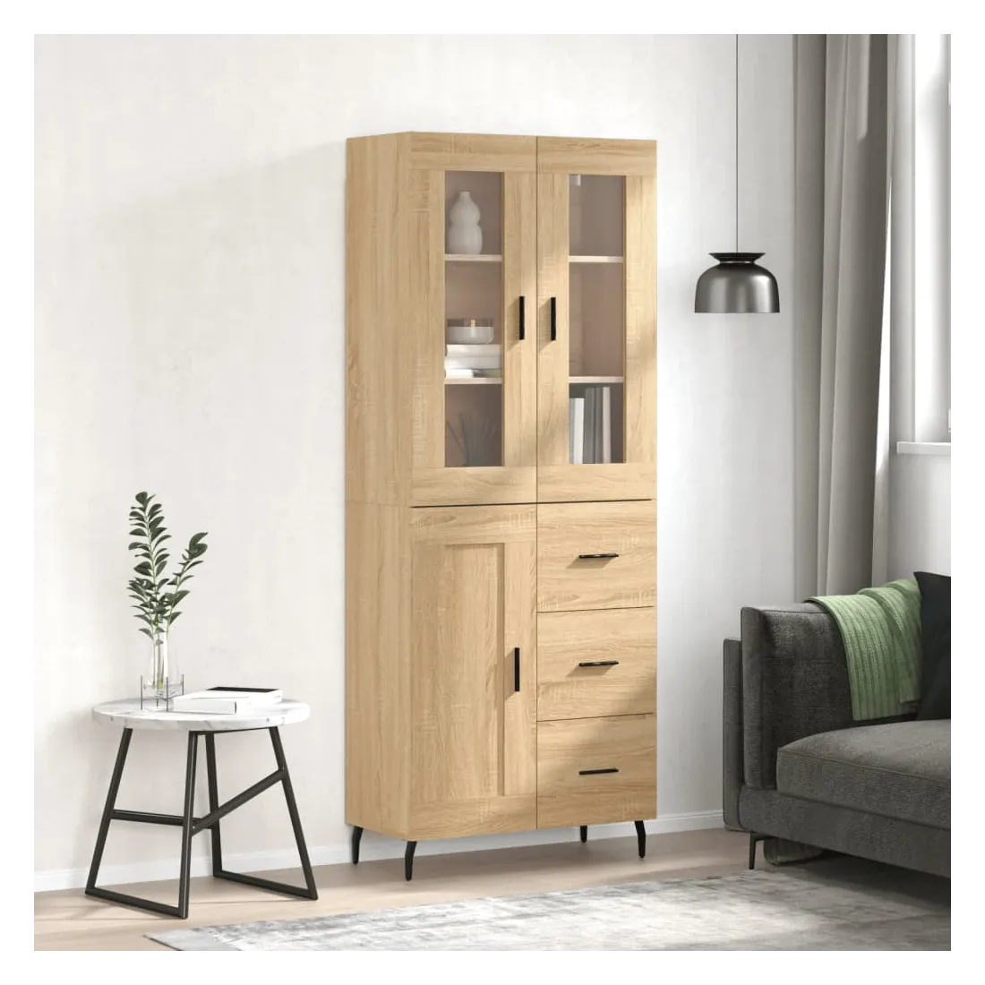 Cherchez-vous un buffet haut de gamme stylé ? Ce buffet haut ajoute un charme élégant à votre intérieur existant ! Matériau durable : le bois d'ingénierie est d'une qualité exceptionnelle avec une surface lisse et présente également résistance, stabilité et résistance à l'humidité.Grand espace de rangement : l'armoire offre un grand espace de rangement pour garder vos différents articles essentiels quotidiens bien organisés et facilement accessibles.Porte pratique : gardez votre espace sans encombrement en cachant de petits articles essentiels derrière la porte de l'armoire de rangement.Pieds en métal : les pieds en métal ajoutent un style calme à votre intérieur tout en assurant la stabilité. Attention :Pour éviter qu'il ne soit renversé, ce produit doit être utilisé avec le dispositif de fixation au mur fourni. Bon à savoir :Les vis et les chevilles pour l'intérieur du mur ne sont pas incluses. Nous vous conseillons de trouver et d'utiliser des vis et des chevilles adaptées spécifiquement à vos murs. Si vous n'êtes pas sûr, vous pouvez consulter un professionnel. Veuillez lire et suivre chaque étape des instructions.