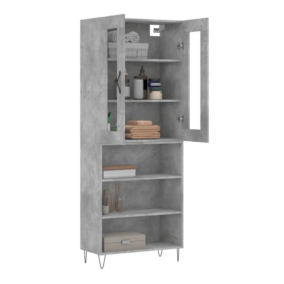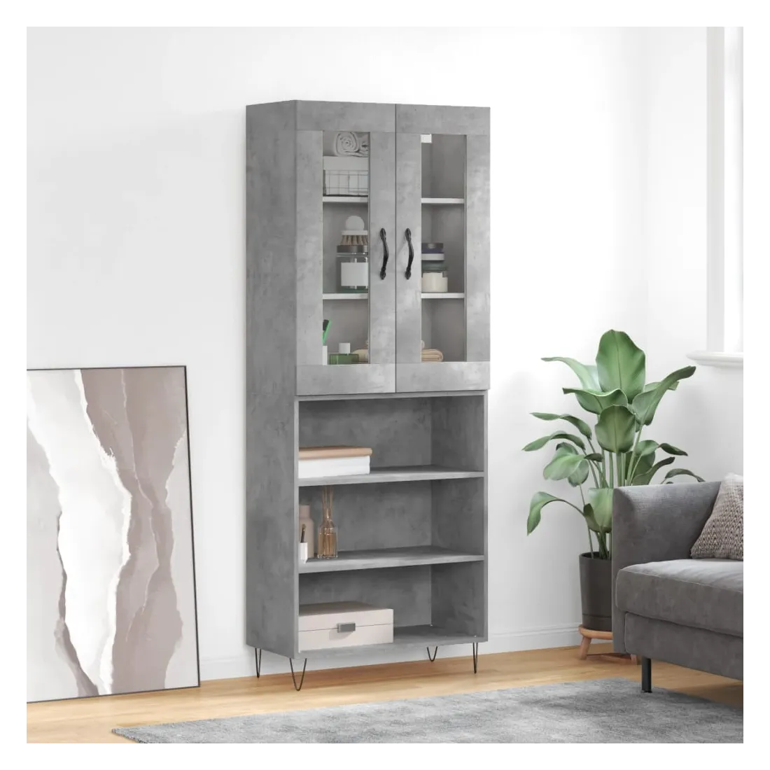 Buffet haut Gris béton 69,5x34x180 cm Bois d'ingénierie