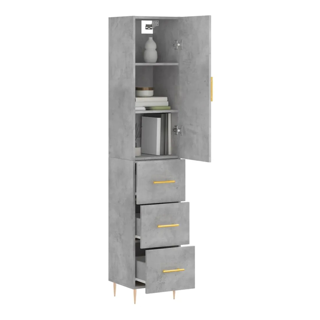 Buffet haut Gris béton 34,5x34x180 cm Bois d'ingénierie