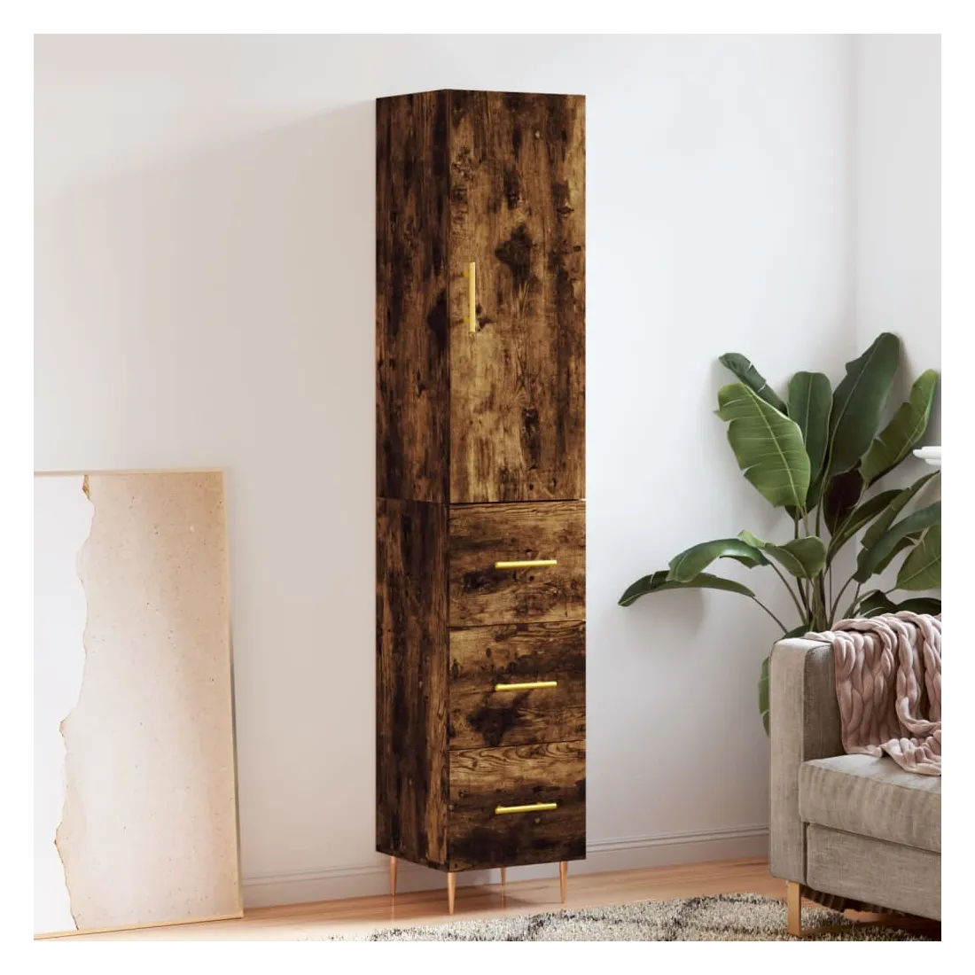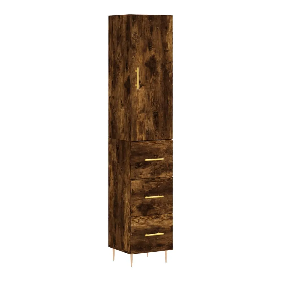 Buffet haut Chêne fumé 34,5x34x180 cm Bois d'ingénierie
