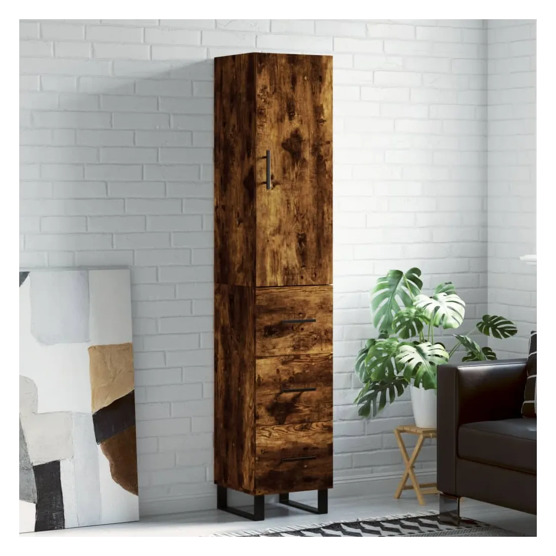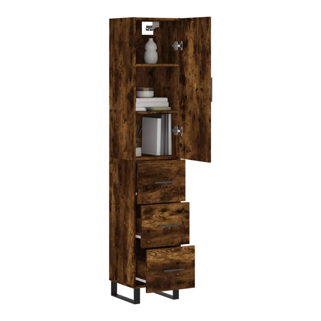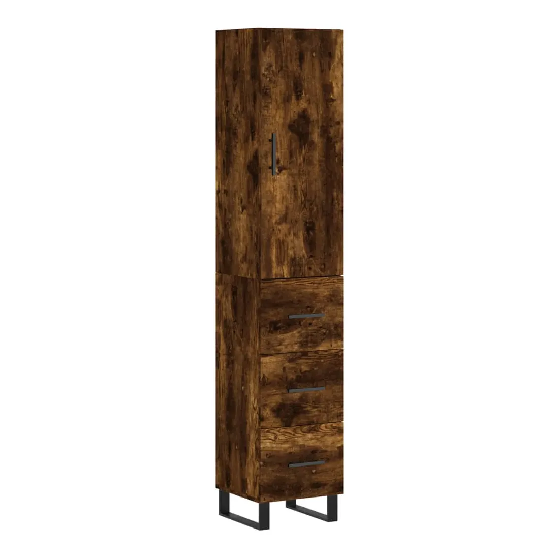Buffet haut Chêne fumé 34,5x34x180 cm Bois d'ingénierie