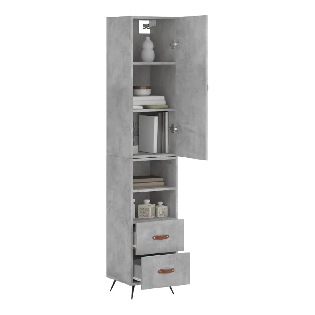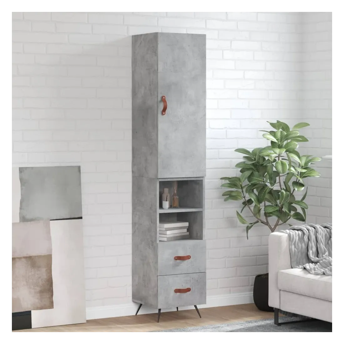 Buffet haut Gris béton 34,5x34x180 cm Bois d'ingénierie