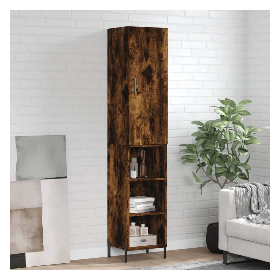 Buffet haut Chêne fumé 34,5x34x180 cm Bois d'ingénierie