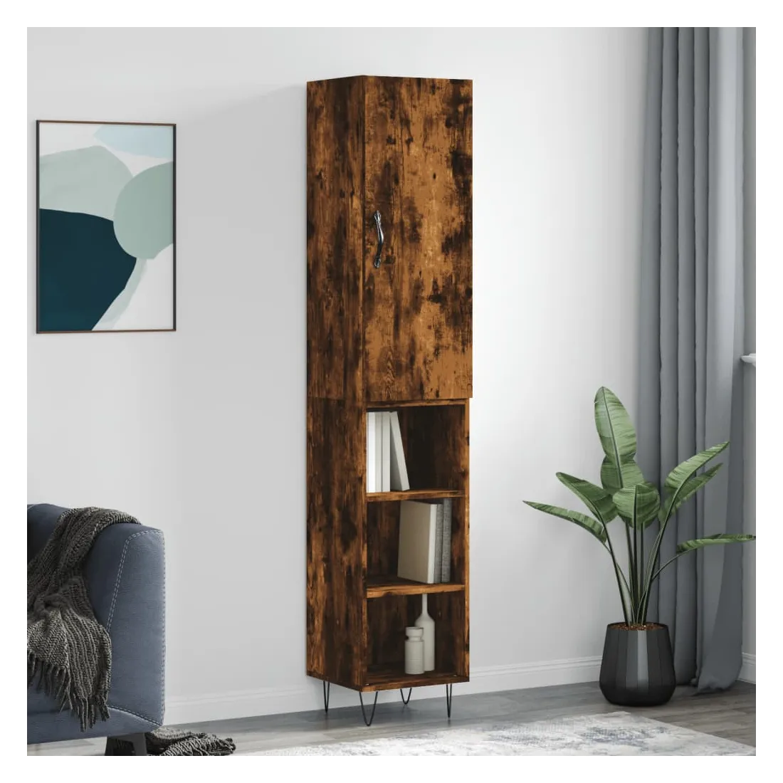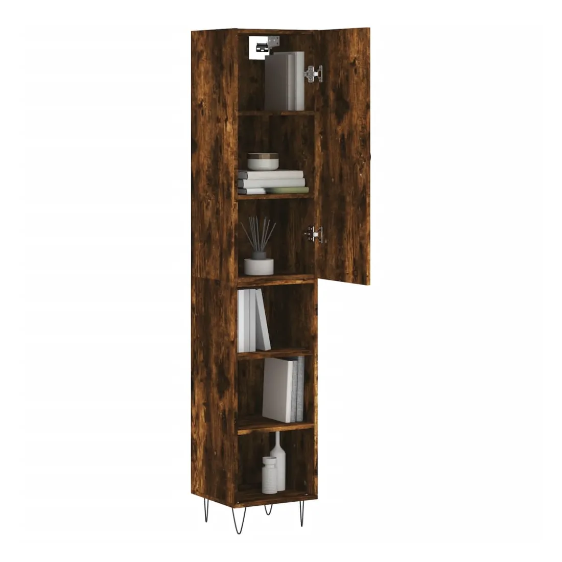 Buffet haut Chêne fumé 34,5x34x180 cm Bois d'ingénierie