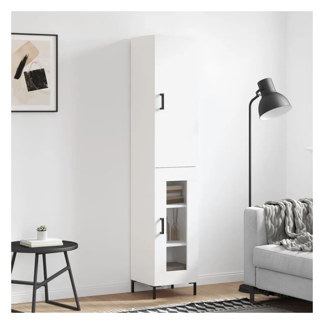Buffet haut Blanc 34,5x34x180 cm Bois d'ingénierie