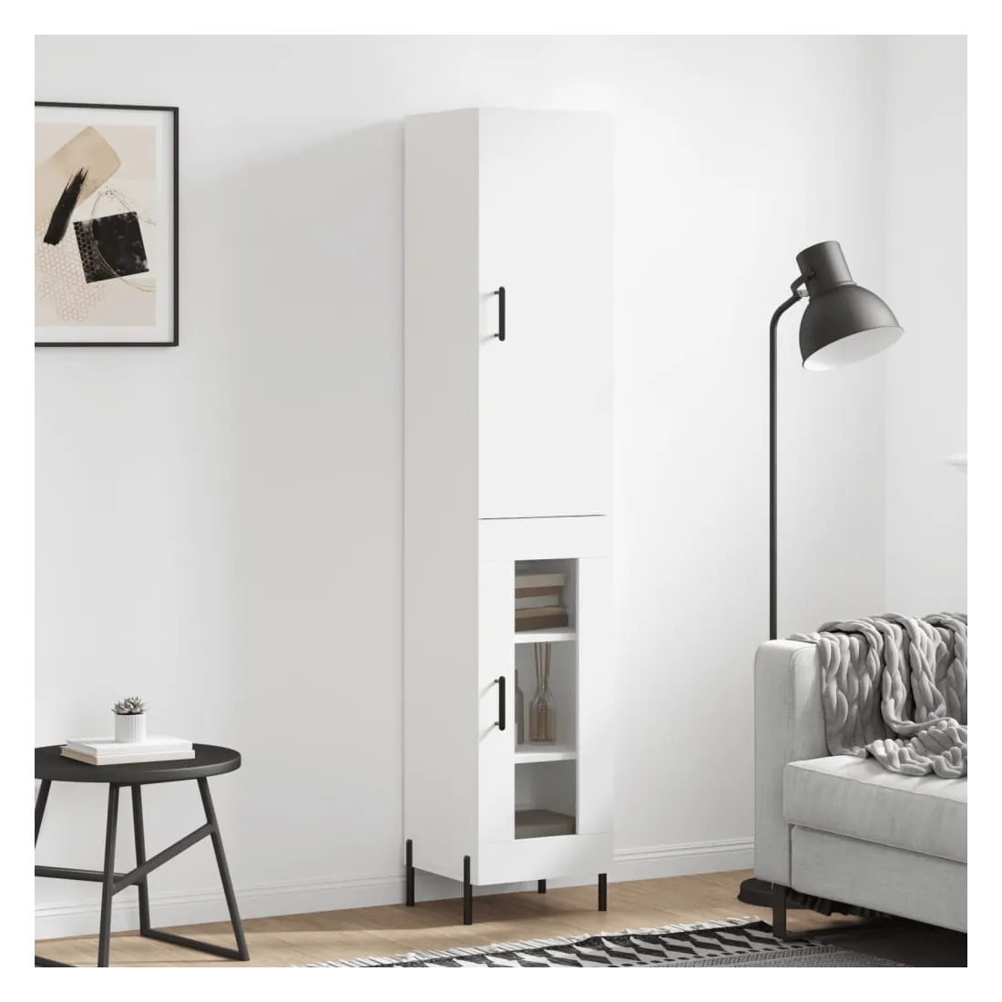 Cherchez-vous un buffet haut de gamme stylé ? Ce buffet haut ajoute un charme élégant à votre intérieur existant ! Matériau durable : le bois d'ingénierie est d'une qualité exceptionnelle avec une surface lisse et présente également résistance, stabilité et résistance à l'humidité.Grand espace de rangement : l'armoire offre un grand espace de rangement pour garder vos différents articles essentiels quotidiens bien organisés et facilement accessibles.Portes pratiques : gardez votre espace sans encombrement en cachant de petits articles essentiels derrière les portes de l'armoire de rangement.Pieds en métal : les pieds en métal ajoutent un style calme à votre intérieur tout en assurant la stabilité. Attention :Pour éviter qu'il ne soit renversé, ce produit doit être utilisé avec le dispositif de fixation au mur fourni. Bon à savoir :Les vis et les chevilles pour l'intérieur du mur ne sont pas incluses. Nous vous conseillons de trouver et d'utiliser des vis et des chevilles adaptées spécifiquement à vos murs. Si vous n'êtes pas sûr, vous pouvez consulter un professionnel. Veuillez lire et suivre chaque étape des instructions.