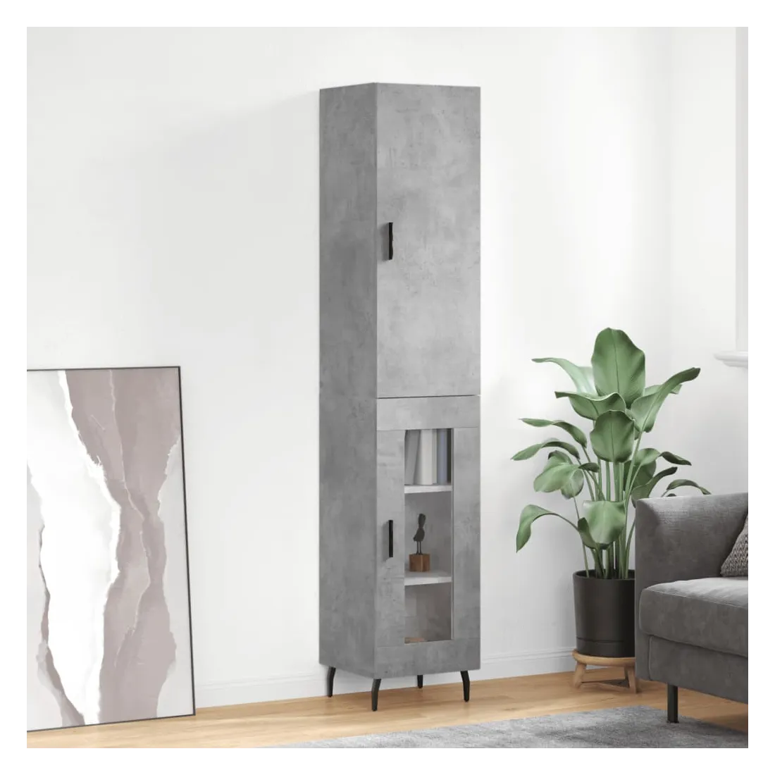 Buffet haut Gris béton 34,5x34x180 cm Bois d'ingénierie