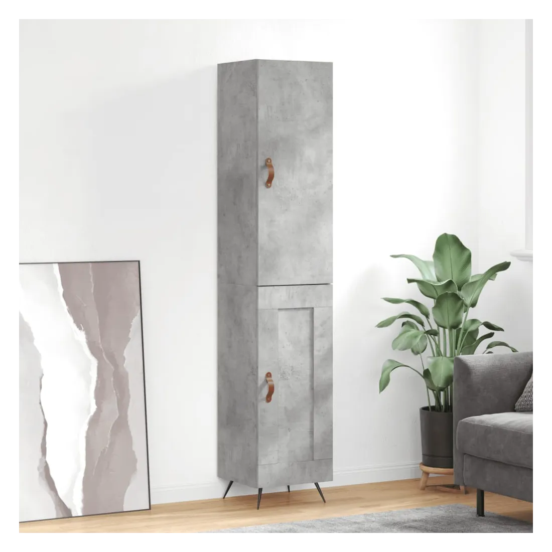 Buffet haut Gris béton 34,5x34x180 cm Bois d'ingénierie