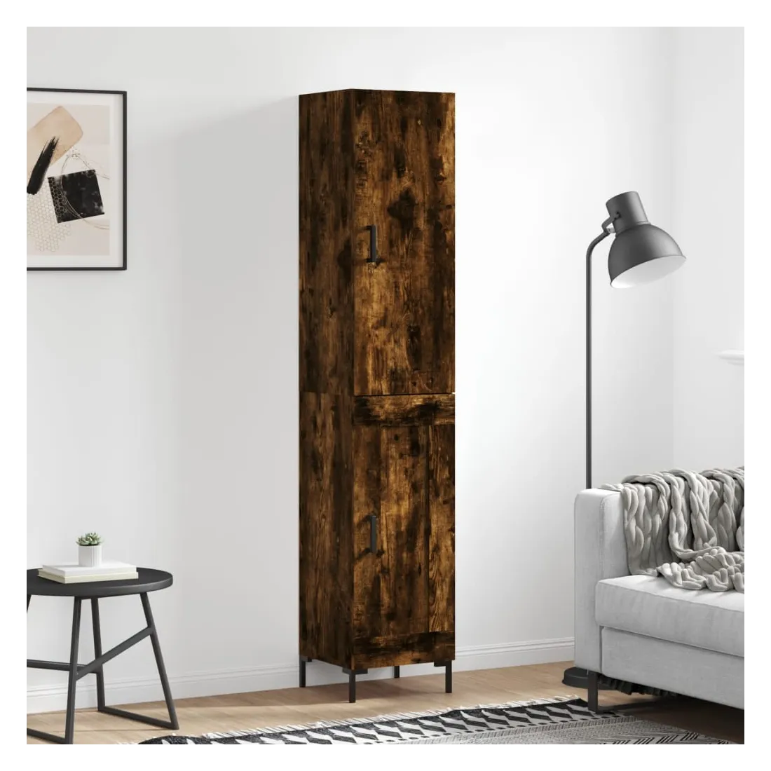 Buffet haut Chêne fumé 34,5x34x180 cm Bois d'ingénierie
