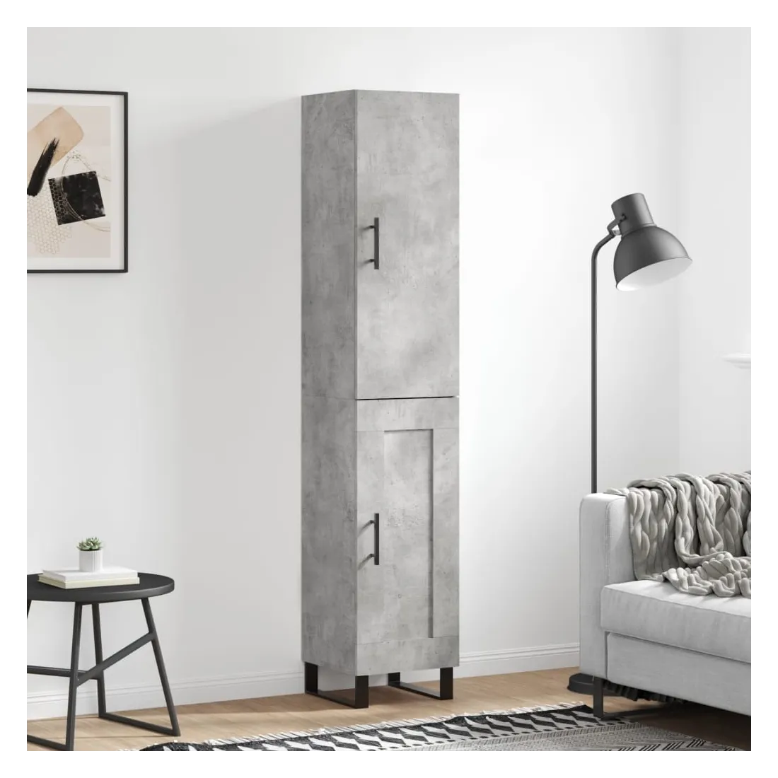 Buffet haut Gris béton 34,5x34x180 cm Bois d'ingénierie