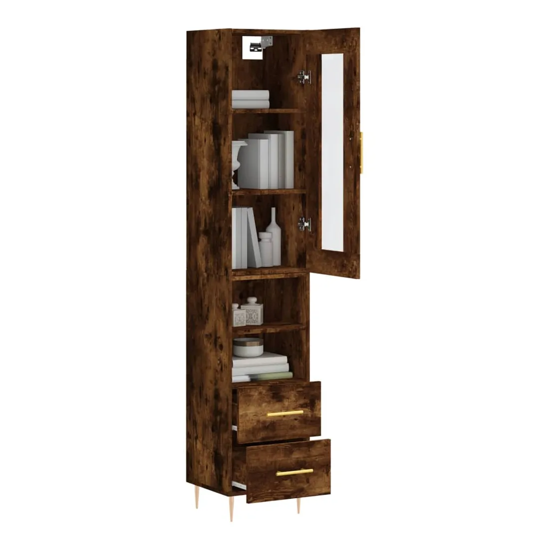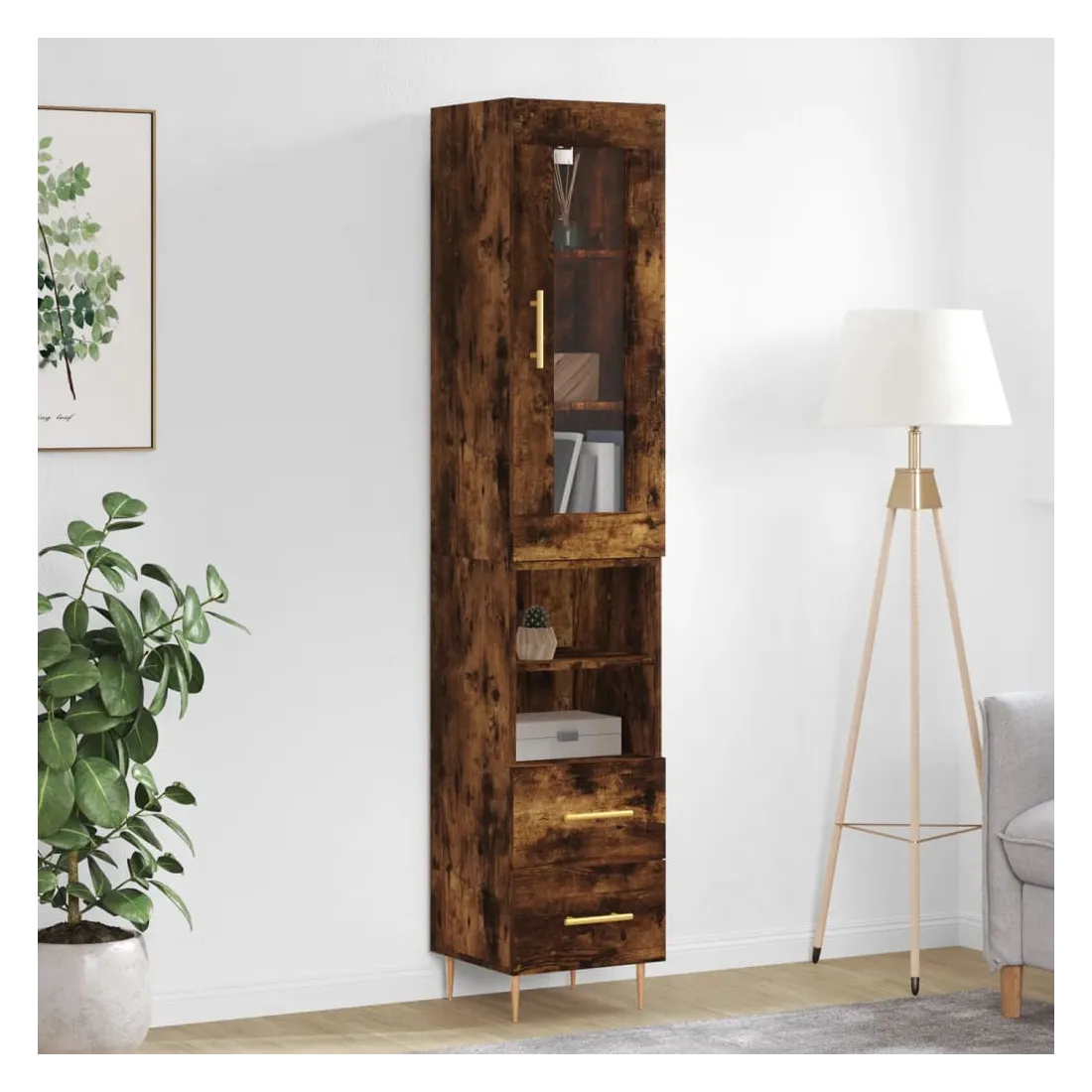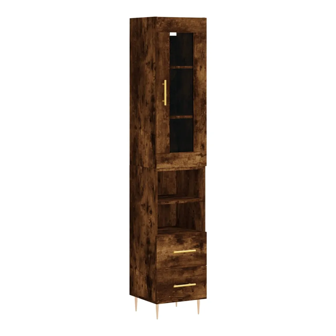 Buffet haut Chêne fumé 34,5x34x180 cm Bois d'ingénierie