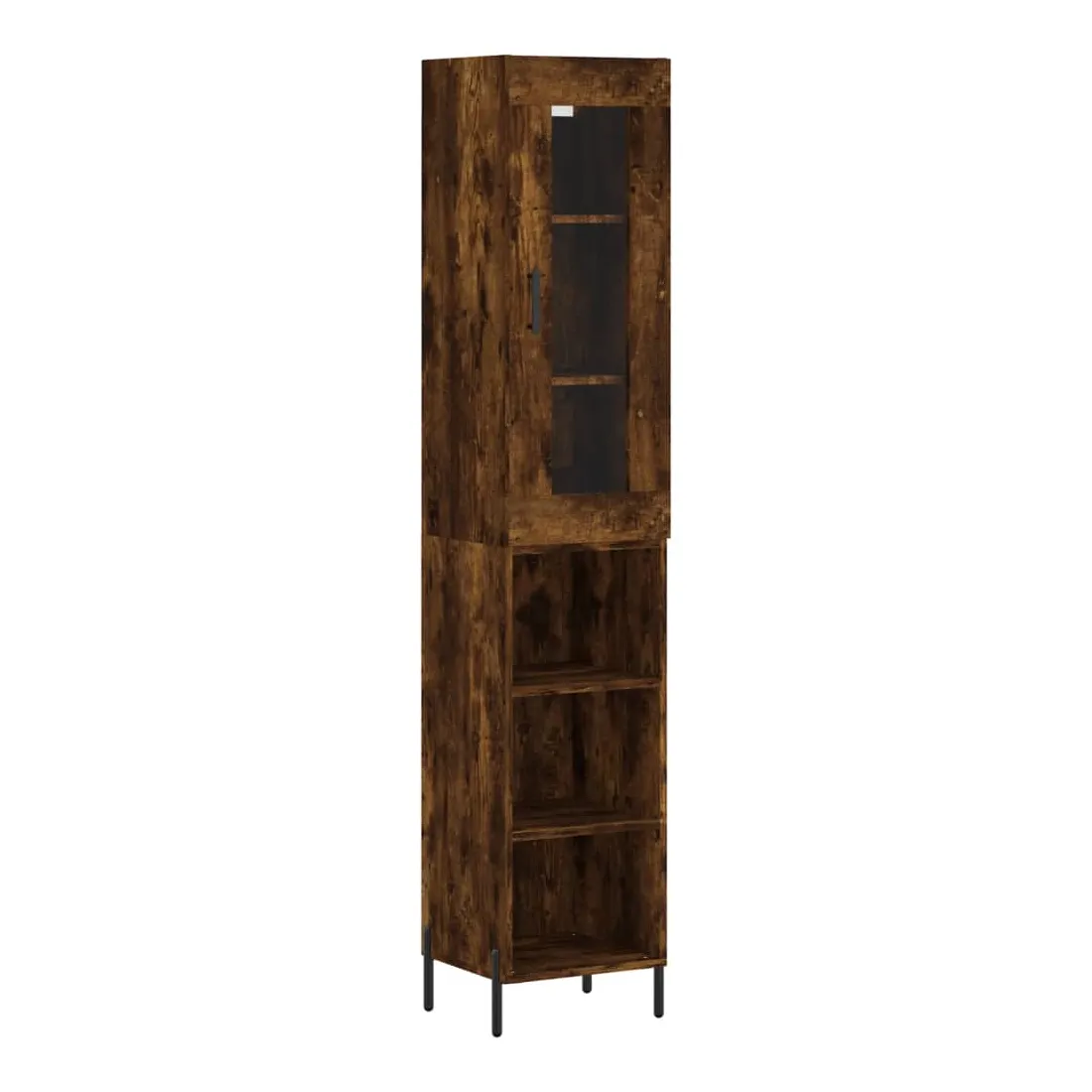 Buffet haut Chêne fumé 34,5x34x180 cm Bois d'ingénierie