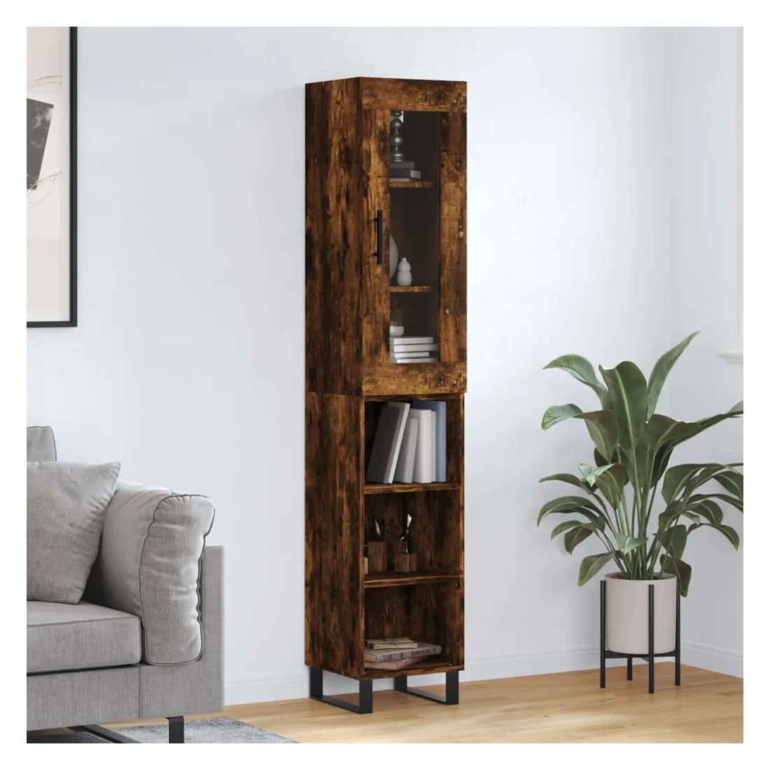 Buffet haut Chêne fumé 34,5x34x180 cm Bois d'ingénierie