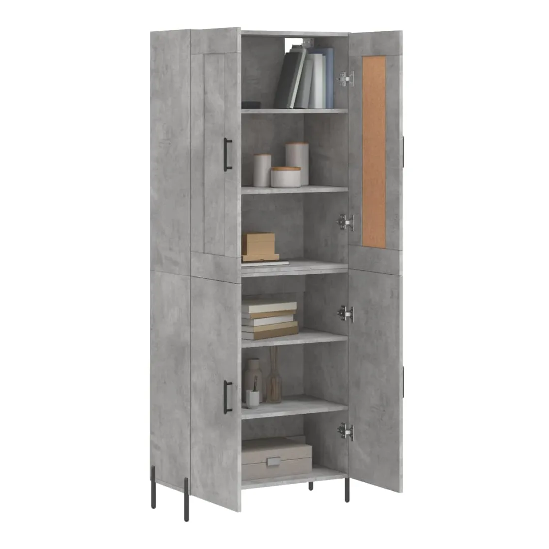 Buffet haut Gris béton 69,5x34x180 cm Bois d'ingénierie