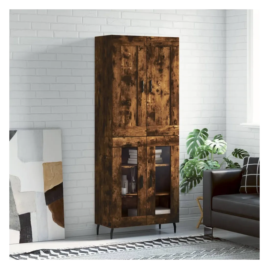 Buffet haut Chêne fumé 69,5x34x180 cm Bois d'ingénierie