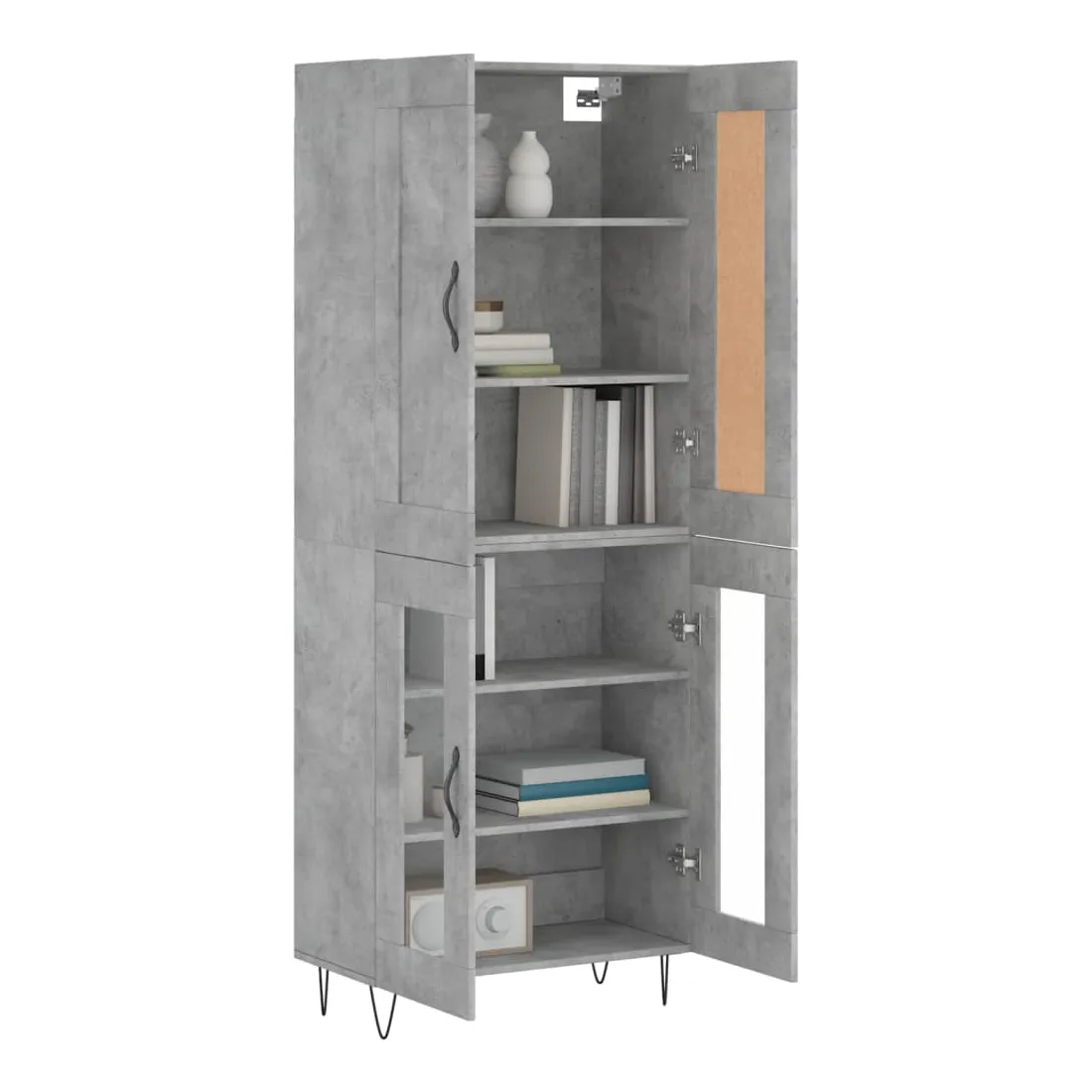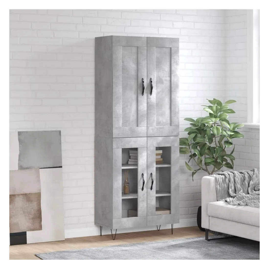 Buffet haut Gris béton 69,5x34x180 cm Bois d'ingénierie
