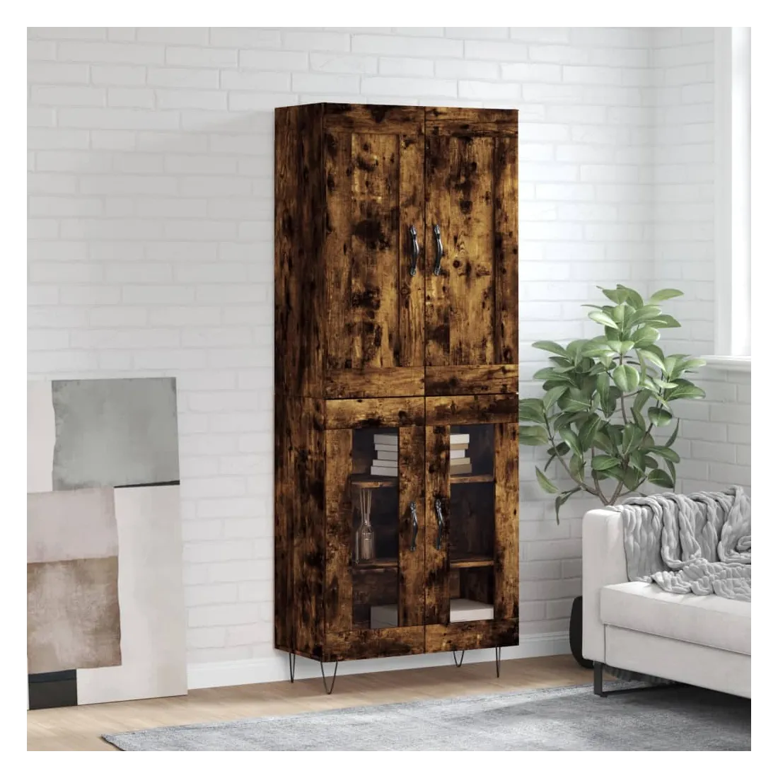 Buffet haut Chêne fumé 69,5x34x180 cm Bois d'ingénierie
