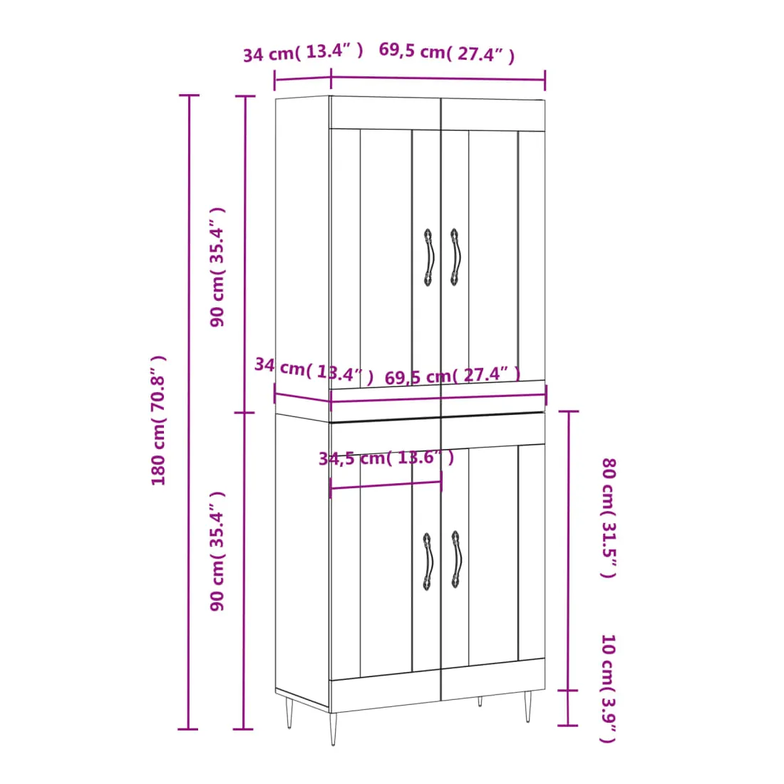 - Dimensions du dessus pour buffet haut : 69,5 x 34 x 90 cm (l x P x H)