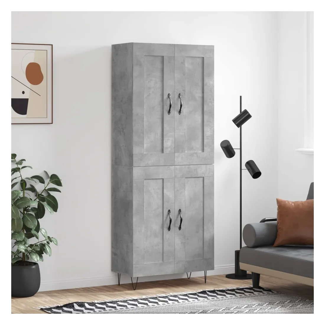 Buffet haut Gris béton 69,5x34x180 cm Bois d'ingénierie
