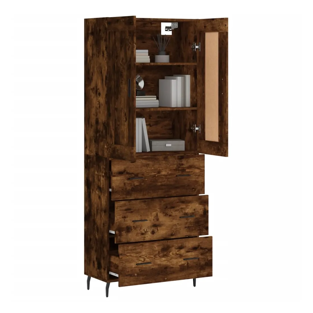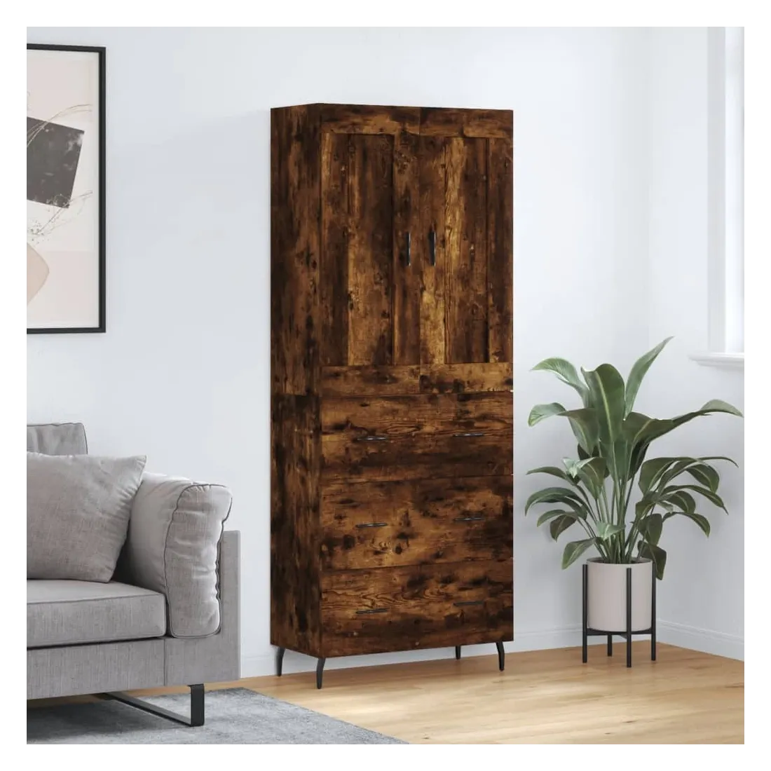 Buffet haut Chêne fumé 69,5x34x180 cm Bois d'ingénierie