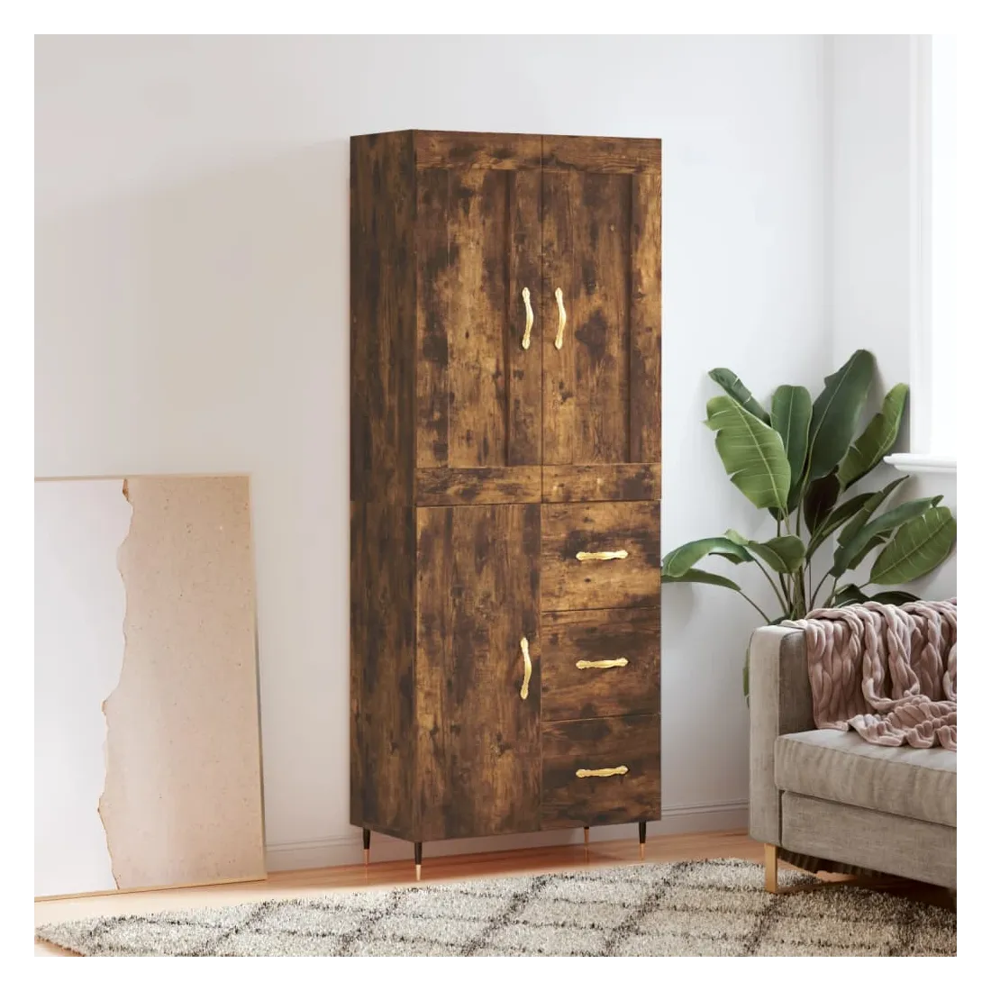 Buffet haut Chêne fumé 69,5x34x180 cm Bois d'ingénierie