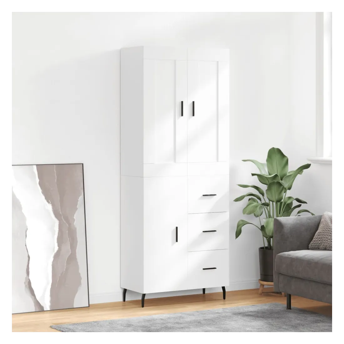 Cherchez-vous un buffet haut de gamme stylé ? Ce buffet haut ajoute un charme élégant à votre intérieur existant ! Matériau durable : le bois d'ingénierie est d'une qualité exceptionnelle avec une surface lisse et présente également résistance, stabilité et résistance à l'humidité.Grand espace de rangement : l'armoire offre un grand espace de rangement pour garder vos différents articles essentiels quotidiens bien organisés et facilement accessibles.Portes pratiques : gardez votre espace sans encombrement en cachant de petits articles essentiels derrière les portes de l'armoire de rangement.Pieds en métal : les pieds en métal ajoutent un style calme à votre intérieur tout en assurant la stabilité. Attention :Pour éviter qu'il ne soit renversé, ce produit doit être utilisé avec le dispositif de fixation au mur fourni. Bon à savoir :Les vis et les chevilles pour l'intérieur du mur ne sont pas incluses. Nous vous conseillons de trouver et d'utiliser des vis et des chevilles adaptées spécifiquement à vos murs. Si vous n'êtes pas sûr, vous pouvez consulter un professionnel. Veuillez lire et suivre chaque étape des instructions.