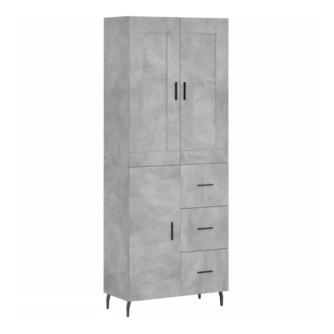 Buffet haut Gris béton 69,5x34x180 cm Bois d'ingénierie