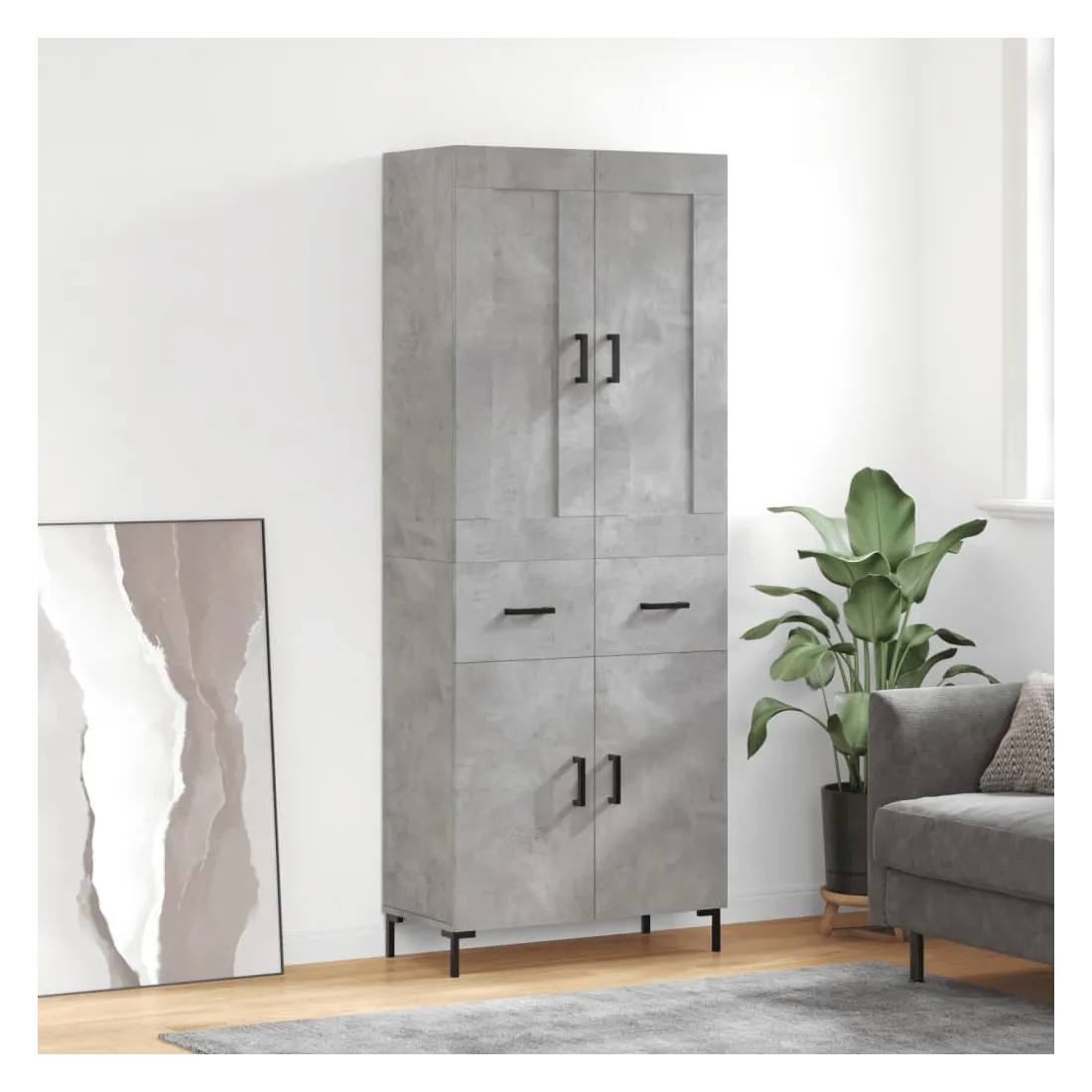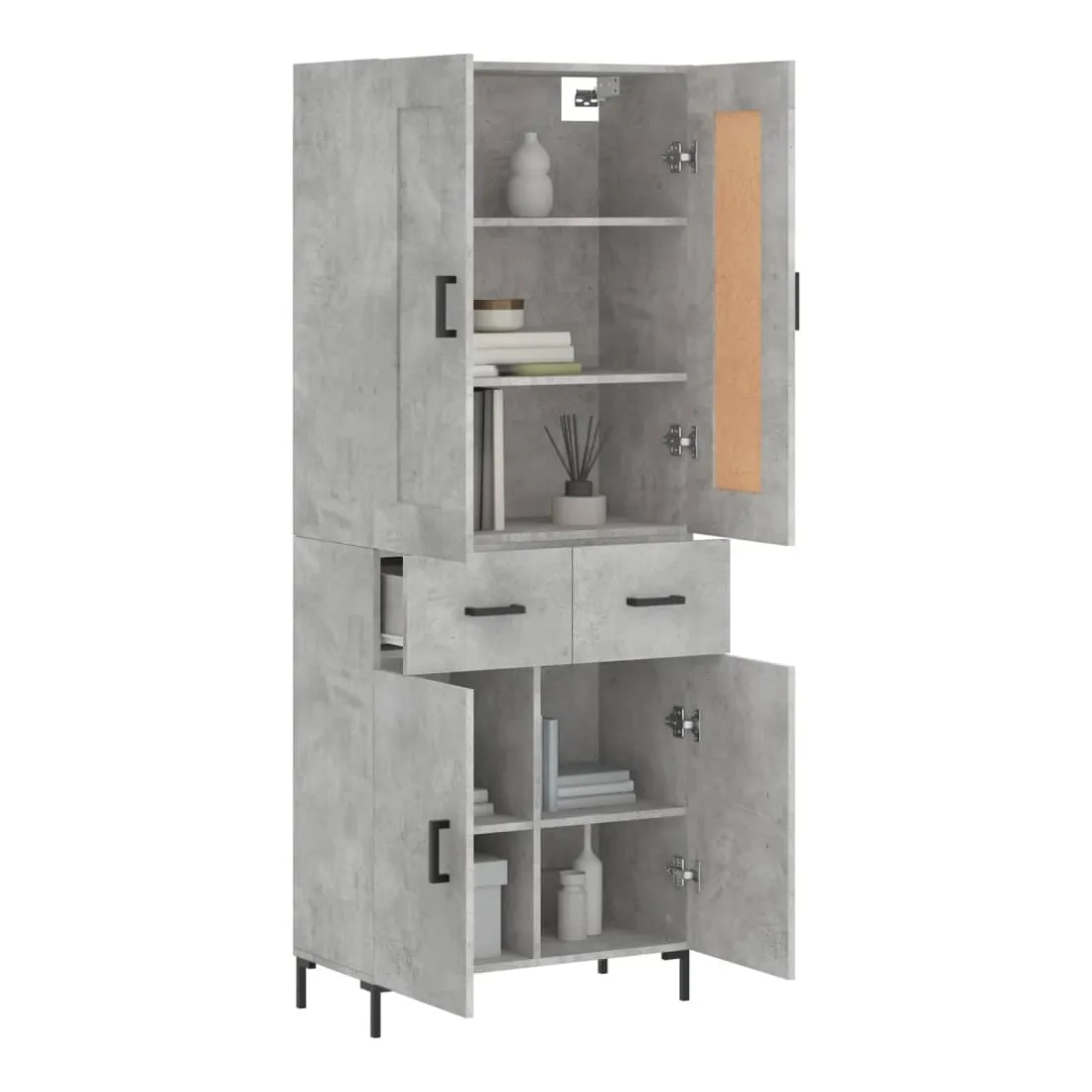 Buffet haut Gris béton 69,5x34x180 cm Bois d'ingénierie