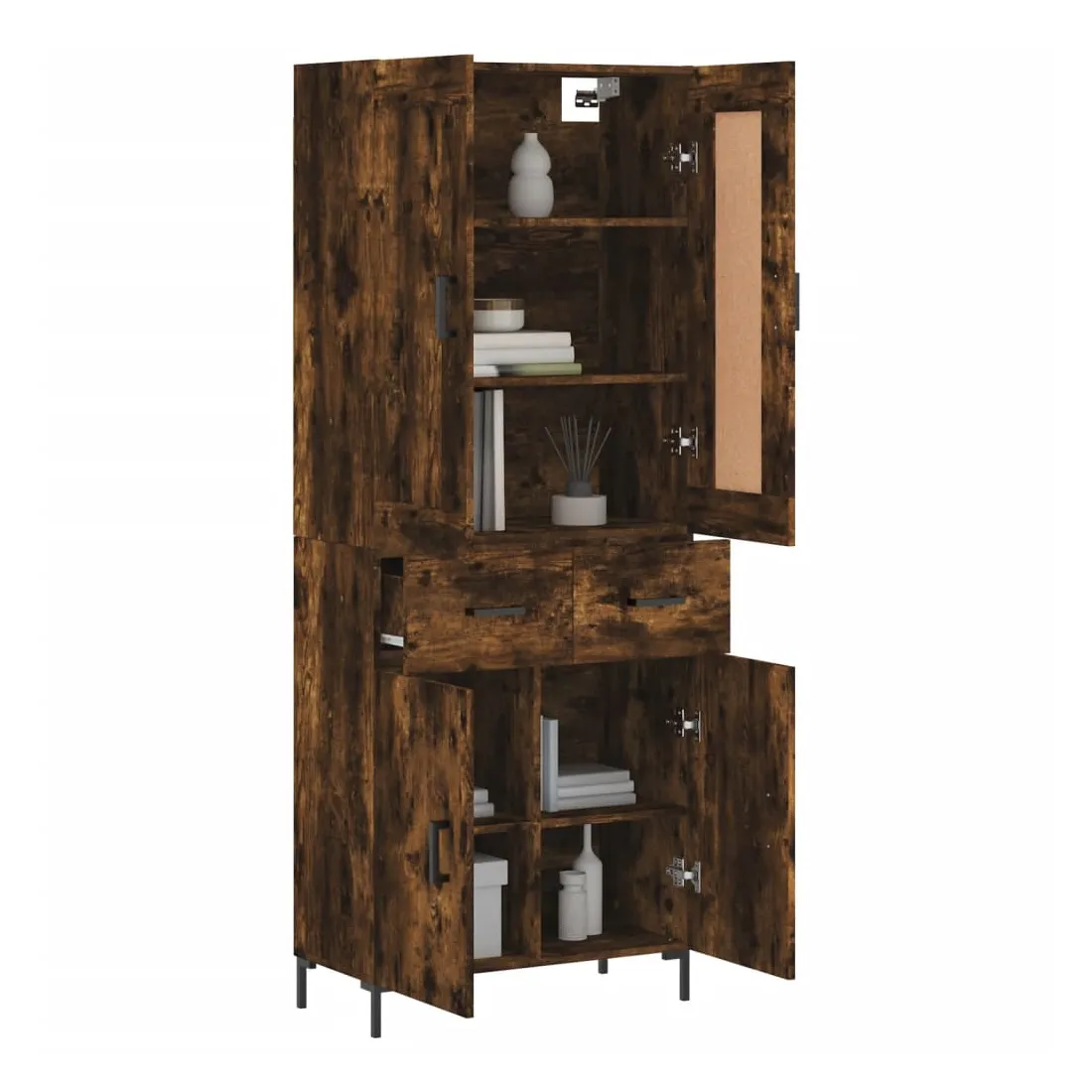 Buffet haut Chêne fumé 69,5x34x180 cm Bois d'ingénierie