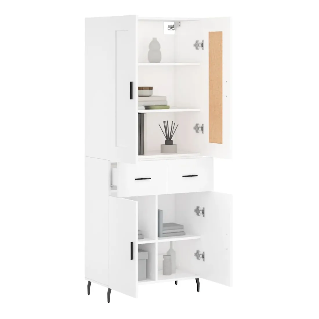 Cherchez-vous un buffet haut de gamme stylé ? Ce buffet haut ajoute un charme élégant à votre intérieur existant ! Matériau durable : le bois d'ingénierie est d'une qualité exceptionnelle avec une surface lisse et présente également résistance, stabilité et résistance à l'humidité.Grand espace de rangement : l'armoire offre un grand espace de rangement pour garder vos différents articles essentiels quotidiens bien organisés et facilement accessibles.Portes pratiques : gardez votre espace sans encombrement en cachant de petits articles essentiels derrière les portes de l'armoire de rangement.Pieds en métal : les pieds en métal ajoutent un style calme à votre intérieur tout en assurant la stabilité. Attention :Pour éviter qu'il ne soit renversé, ce produit doit être utilisé avec le dispositif de fixation au mur fourni. Bon à savoir :Les vis et les chevilles pour l'intérieur du mur ne sont pas incluses. Nous vous conseillons de trouver et d'utiliser des vis et des chevilles adaptées spécifiquement à vos murs. Si vous n'êtes pas sûr, vous pouvez consulter un professionnel. Veuillez lire et suivre chaque étape des instructions.