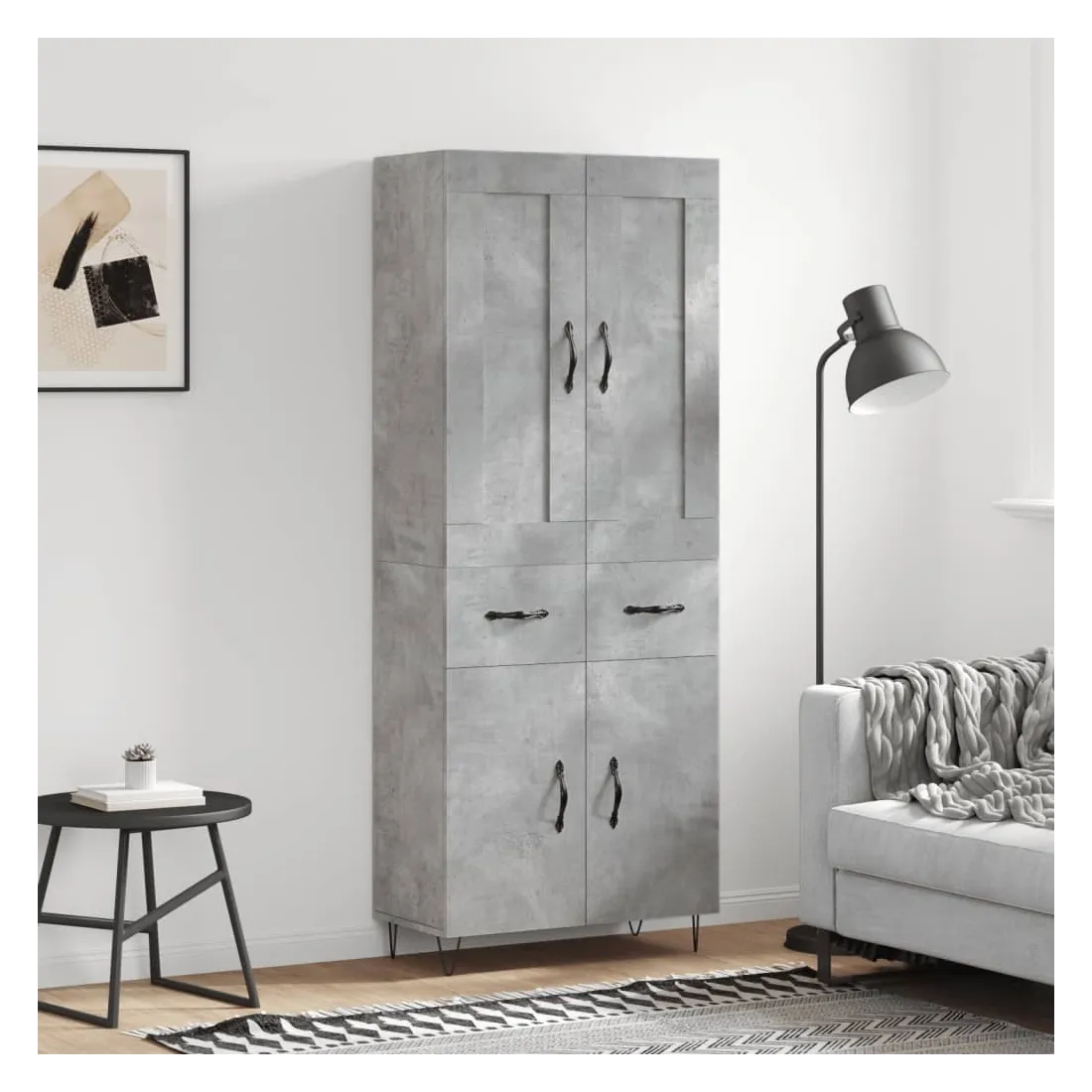 Buffet haut Gris béton 69,5x34x180 cm Bois d'ingénierie