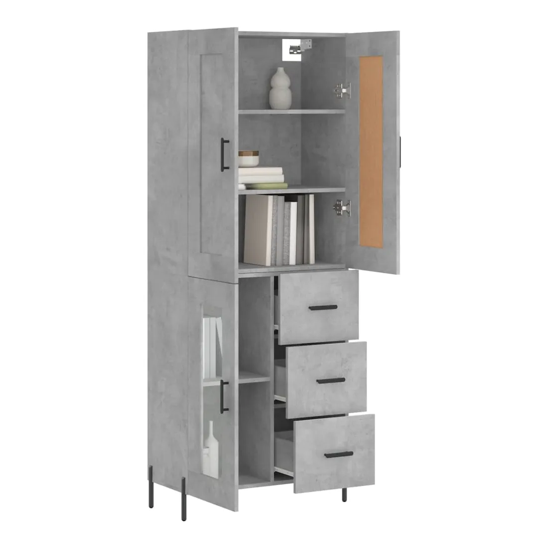 Cherchez-vous un buffet haut de gamme stylé ? Ce buffet haut ajoute un charme élégant à votre intérieur existant ! Matériau durable : le bois d'ingénierie est d'une qualité exceptionnelle avec une surface lisse et présente également résistance, stabilité et résistance à l'humidité.Grand espace de rangement : l'armoire offre un grand espace de rangement pour garder vos différents articles essentiels quotidiens bien organisés et facilement accessibles.Portes pratiques : gardez votre espace sans encombrement en cachant de petits articles essentiels derrière les portes de l'armoire de rangement.Pieds en métal : les pieds en métal ajoutent un style calme à votre intérieur tout en assurant la stabilité. Attention :Pour éviter qu'il ne soit renversé, ce produit doit être utilisé avec le dispositif de fixation au mur fourni. Bon à savoir :Les vis et les chevilles pour l'intérieur du mur ne sont pas incluses. Nous vous conseillons de trouver et d'utiliser des vis et des chevilles adaptées spécifiquement à vos murs. Si vous n'êtes pas sûr, vous pouvez consulter un professionnel. Veuillez lire et suivre chaque étape des instructions.