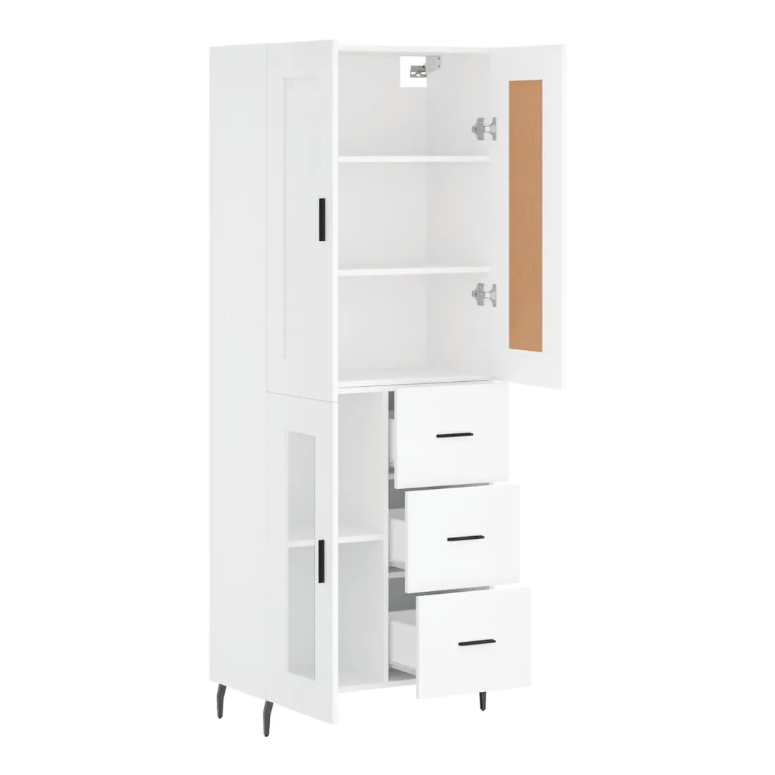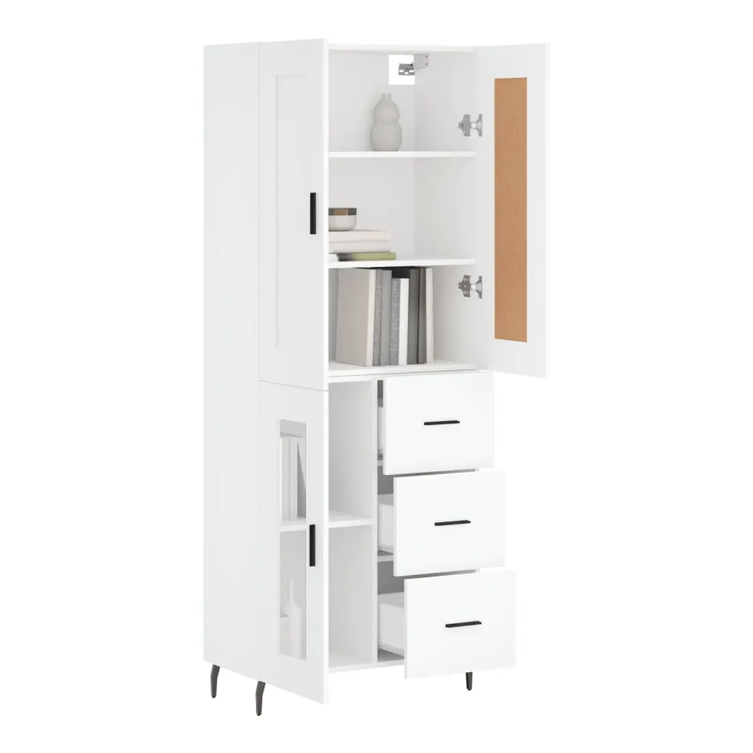 Cherchez-vous un buffet haut de gamme stylé ? Ce buffet haut ajoute un charme élégant à votre intérieur existant ! Matériau durable : le bois d'ingénierie est d'une qualité exceptionnelle avec une surface lisse et présente également résistance, stabilité et résistance à l'humidité.Grand espace de rangement : l'armoire offre un grand espace de rangement pour garder vos différents articles essentiels quotidiens bien organisés et facilement accessibles.Portes pratiques : gardez votre espace sans encombrement en cachant de petits articles essentiels derrière les portes de l'armoire de rangement.Pieds en métal : les pieds en métal ajoutent un style calme à votre intérieur tout en assurant la stabilité. Attention :Pour éviter qu'il ne soit renversé, ce produit doit être utilisé avec le dispositif de fixation au mur fourni. Bon à savoir :Les vis et les chevilles pour l'intérieur du mur ne sont pas incluses. Nous vous conseillons de trouver et d'utiliser des vis et des chevilles adaptées spécifiquement à vos murs. Si vous n'êtes pas sûr, vous pouvez consulter un professionnel. Veuillez lire et suivre chaque étape des instructions.