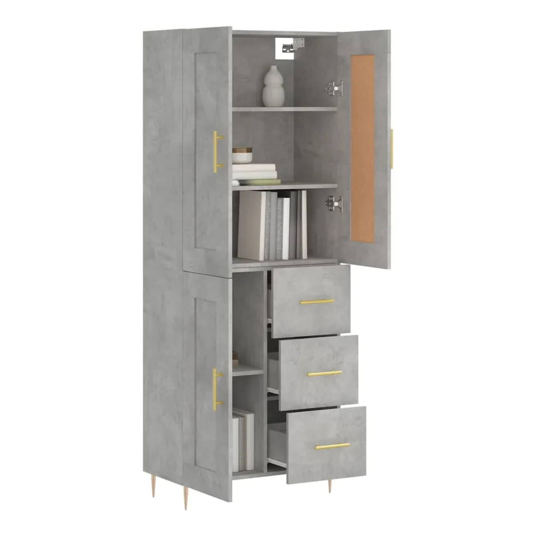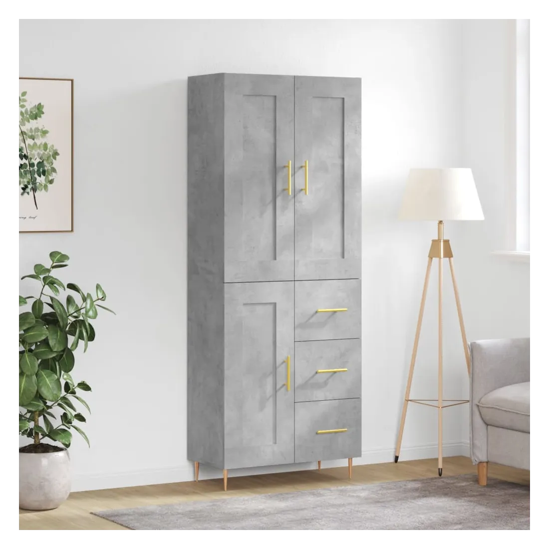 Buffet haut Gris béton 69,5x34x180 cm Bois d'ingénierie