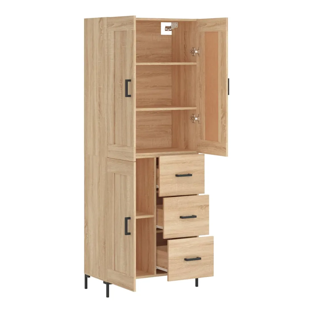 vidaXLCherchez-vous un buffet haut de gamme stylé ? Ce buffet haut ajoute un charme élégant à votre intérieur existant ! Matériau durable : le bois d'ingénierie est d'une qualité exceptionnelle avec une surface lisse et présente également résistance, stabilité et résistance à l'humidité.Grand espace de rangement : l'armoire offre un grand espace de rangement pour garder vos différents articles essentiels quotidiens bien organisés et facilement accessibles.Portes pratiques : gardez votre espace sans encombrement en cachant de petits articles essentiels derrière les portes de l'armoire de rangement.Pieds en métal : les pieds en métal ajoutent un style calme à votre intérieur tout en assurant la stabilité. Attention :Pour éviter qu'il ne soit renversé, ce produit doit être utilisé avec le dispositif de fixation au mur fourni. Bon à savoir :Les vis et les chevilles pour l'intérieur du mur ne sont pas incluses. Nous vous conseillons de trouver et d'utiliser des vis et des chevilles adaptées spécifiquement à vos murs. Si vous n'êtes pas sûr, vous pouvez consulter un professionnel. Veuillez lire et suivre chaque étape des instructions.