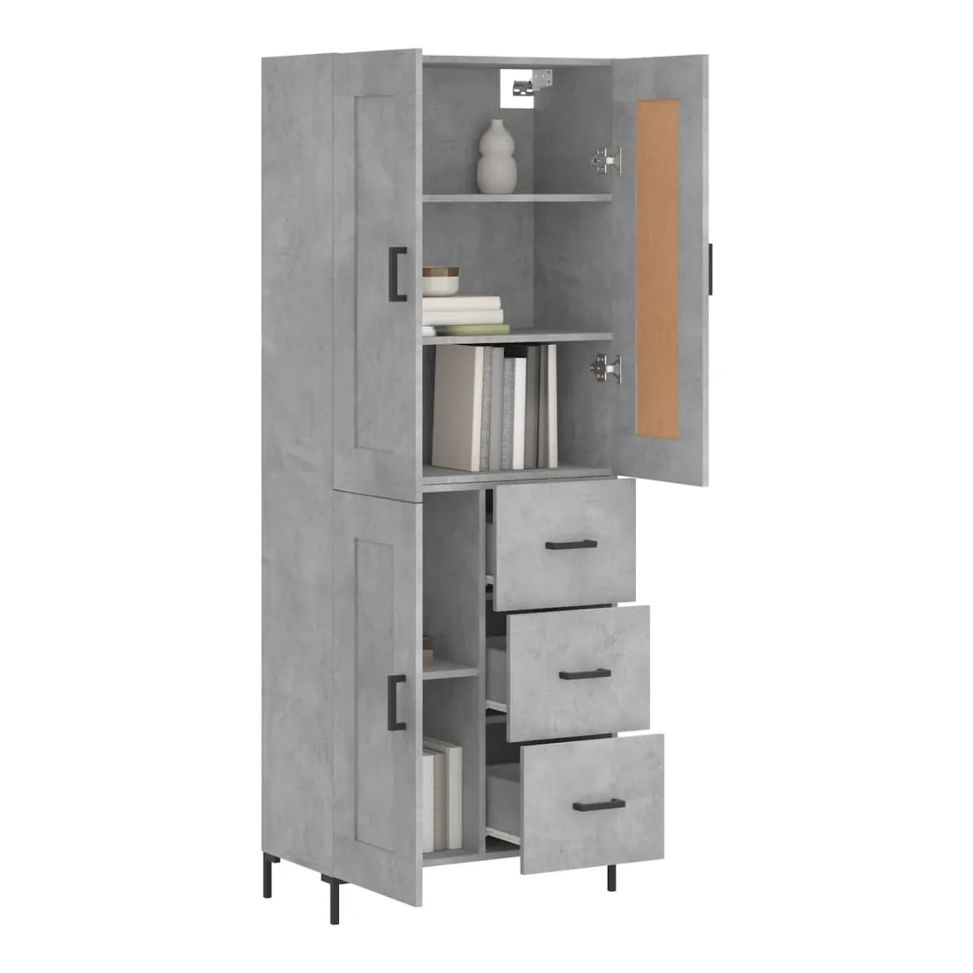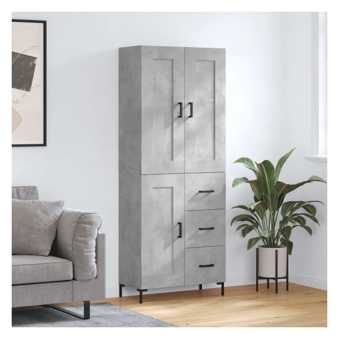 Buffet haut Gris béton 69,5x34x180 cm Bois d'ingénierie