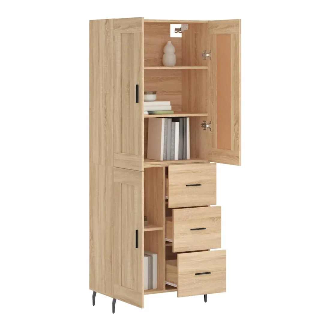 Cherchez-vous un buffet haut de gamme stylé ? Ce buffet haut ajoute un charme élégant à votre intérieur existant ! Matériau durable : le bois d'ingénierie est d'une qualité exceptionnelle avec une surface lisse et présente également résistance, stabilité et résistance à l'humidité.Grand espace de rangement : l'armoire offre un grand espace de rangement pour garder vos différents articles essentiels quotidiens bien organisés et facilement accessibles.Portes pratiques : gardez votre espace sans encombrement en cachant de petits articles essentiels derrière les portes de l'armoire de rangement.Pieds en métal : les pieds en métal ajoutent un style calme à votre intérieur tout en assurant la stabilité. Attention :Pour éviter qu'il ne soit renversé, ce produit doit être utilisé avec le dispositif de fixation au mur fourni. Bon à savoir :Les vis et les chevilles pour l'intérieur du mur ne sont pas incluses. Nous vous conseillons de trouver et d'utiliser des vis et des chevilles adaptées spécifiquement à vos murs. Si vous n'êtes pas sûr, vous pouvez consulter un professionnel. Veuillez lire et suivre chaque étape des instructions.