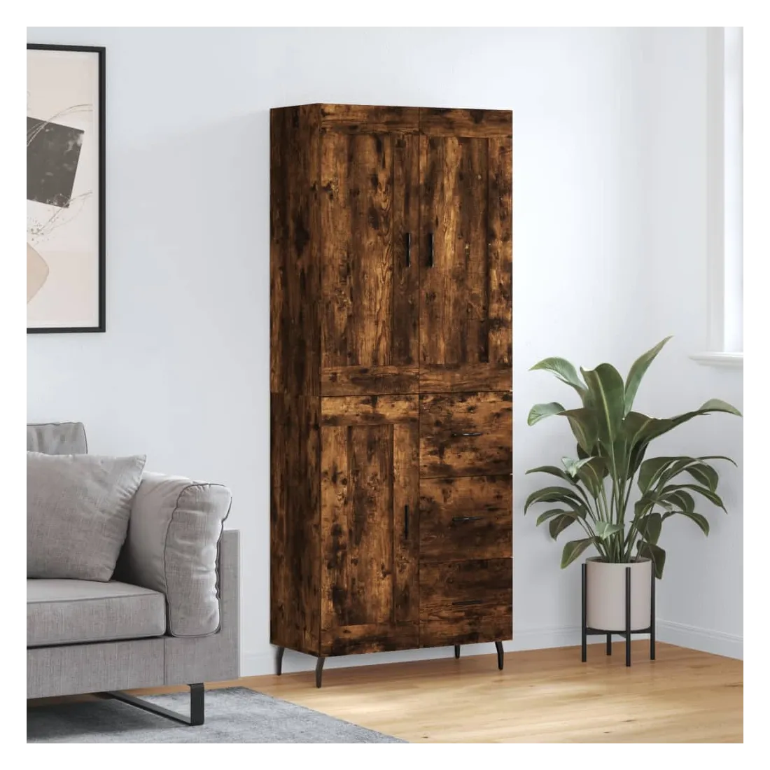 Buffet haut Chêne fumé 69,5x34x180 cm Bois d'ingénierie