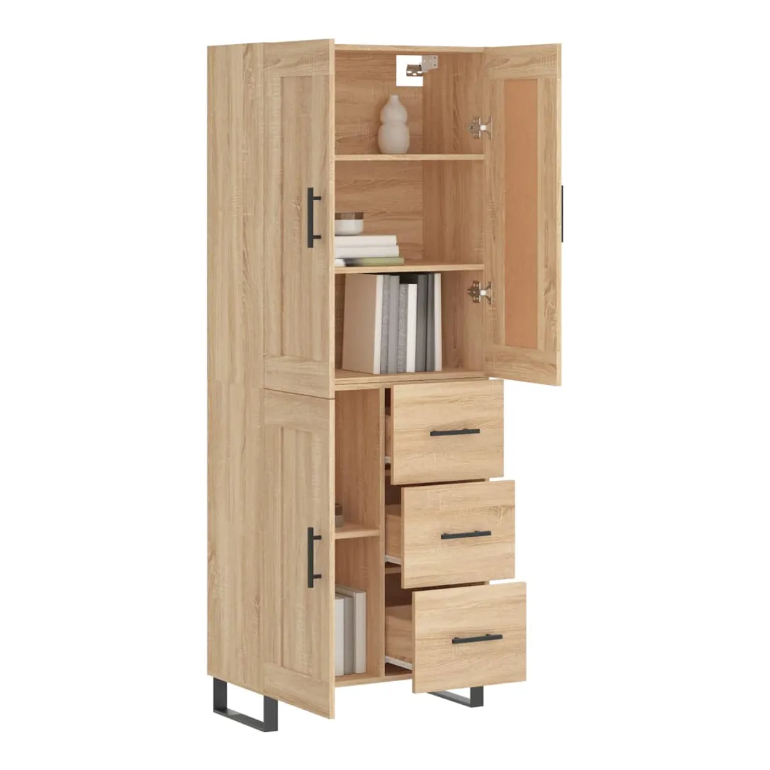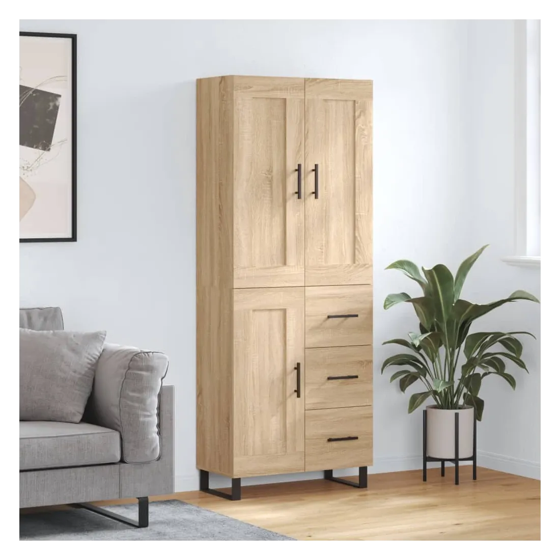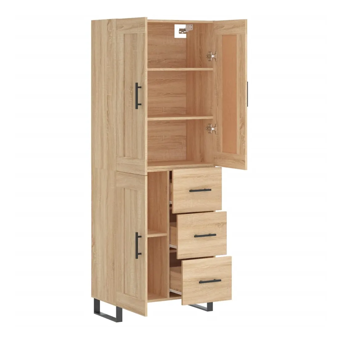 Cherchez-vous un buffet haut de gamme stylé ? Ce buffet haut ajoute un charme élégant à votre intérieur existant ! Matériau durable : le bois d'ingénierie est d'une qualité exceptionnelle avec une surface lisse et présente également résistance, stabilité et résistance à l'humidité.Grand espace de rangement : l'armoire offre un grand espace de rangement pour garder vos différents articles essentiels quotidiens bien organisés et facilement accessibles.Portes pratiques : gardez votre espace sans encombrement en cachant de petits articles essentiels derrière les portes de l'armoire de rangement.Pieds en métal : les pieds en métal ajoutent un style calme à votre intérieur tout en assurant la stabilité. Attention :Pour éviter qu'il ne soit renversé, ce produit doit être utilisé avec le dispositif de fixation au mur fourni. Bon à savoir :Les vis et les chevilles pour l'intérieur du mur ne sont pas incluses. Nous vous conseillons de trouver et d'utiliser des vis et des chevilles adaptées spécifiquement à vos murs. Si vous n'êtes pas sûr, vous pouvez consulter un professionnel. Veuillez lire et suivre chaque étape des instructions.