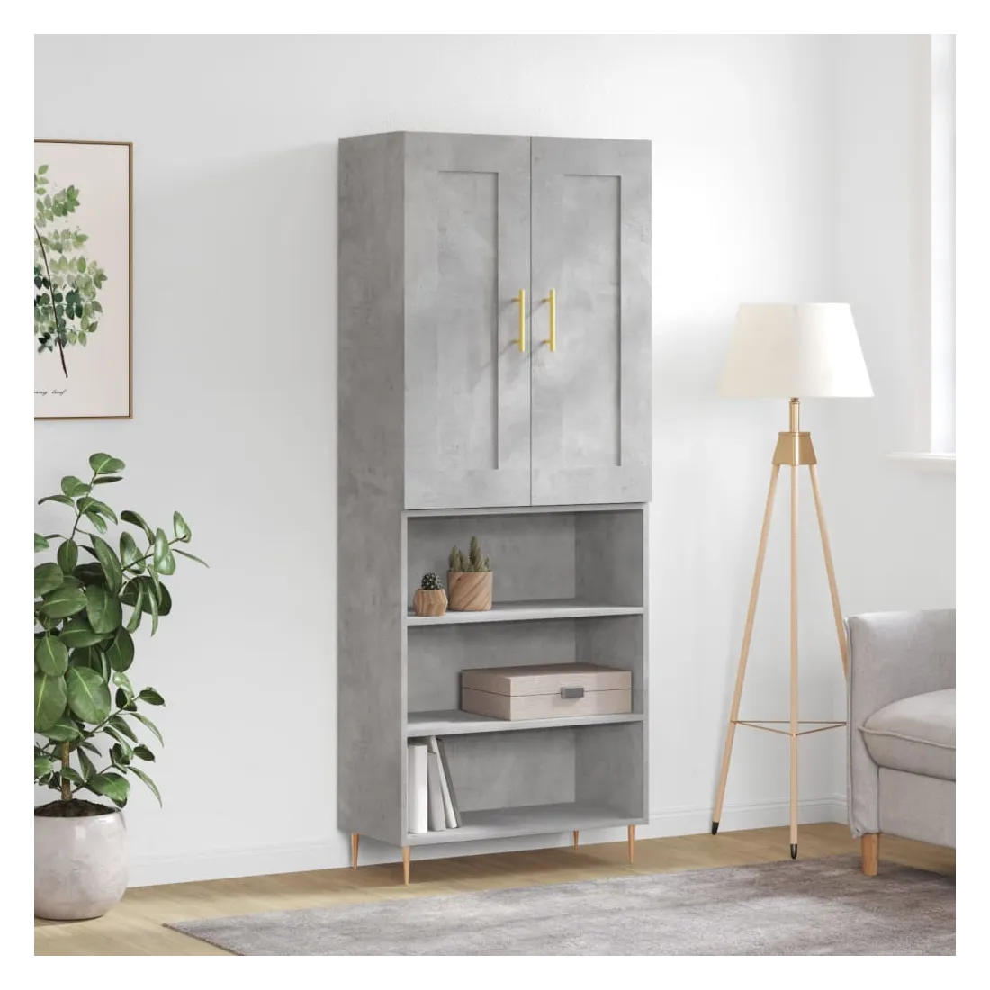 Buffet haut Gris béton 69,5x34x180 cm Bois d'ingénierie