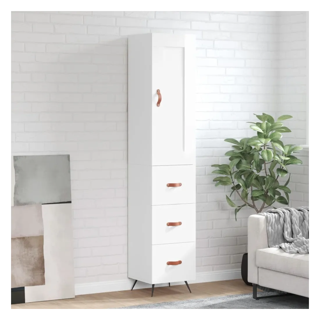 Cherchez-vous un buffet haut de gamme stylé ? Ce buffet haut ajoute un charme élégant à votre intérieur existant ! Matériau durable : le bois d'ingénierie est d'une qualité exceptionnelle avec une surface lisse et se caractérise par sa solidité, stabilité et résistance à l'humidité. Fabriquée en bois d'ingénierie, l'armoire est robuste et durable.Grand espace de rangement : l'armoire latérale offre un grand espace de rangement pour garder vos différents articles essentiels quotidiens bien organisés et facilement accessibles.Porte pratique : gardez votre espace sans encombrement en cachant de petits objets essentiels derrière la porte de l'armoire haute.Pieds en métal : les pieds en métal ajoutent un style calme à votre intérieur tout en assurant la stabilité. Attention :Pour éviter qu'il ne soit renversé, ce produit doit être utilisé avec le dispositif de fixation au mur fourni. Bon à savoir :Les vis et les chevilles pour l'intérieur du mur ne sont pas incluses. Nous vous conseillons de trouver et d'utiliser des vis et des chevilles adaptées spécifiquement à vos murs. Si vous n'êtes pas sûr, vous pouvez consulter un professionnel. Veuillez lire et suivre chaque étape des instructions.